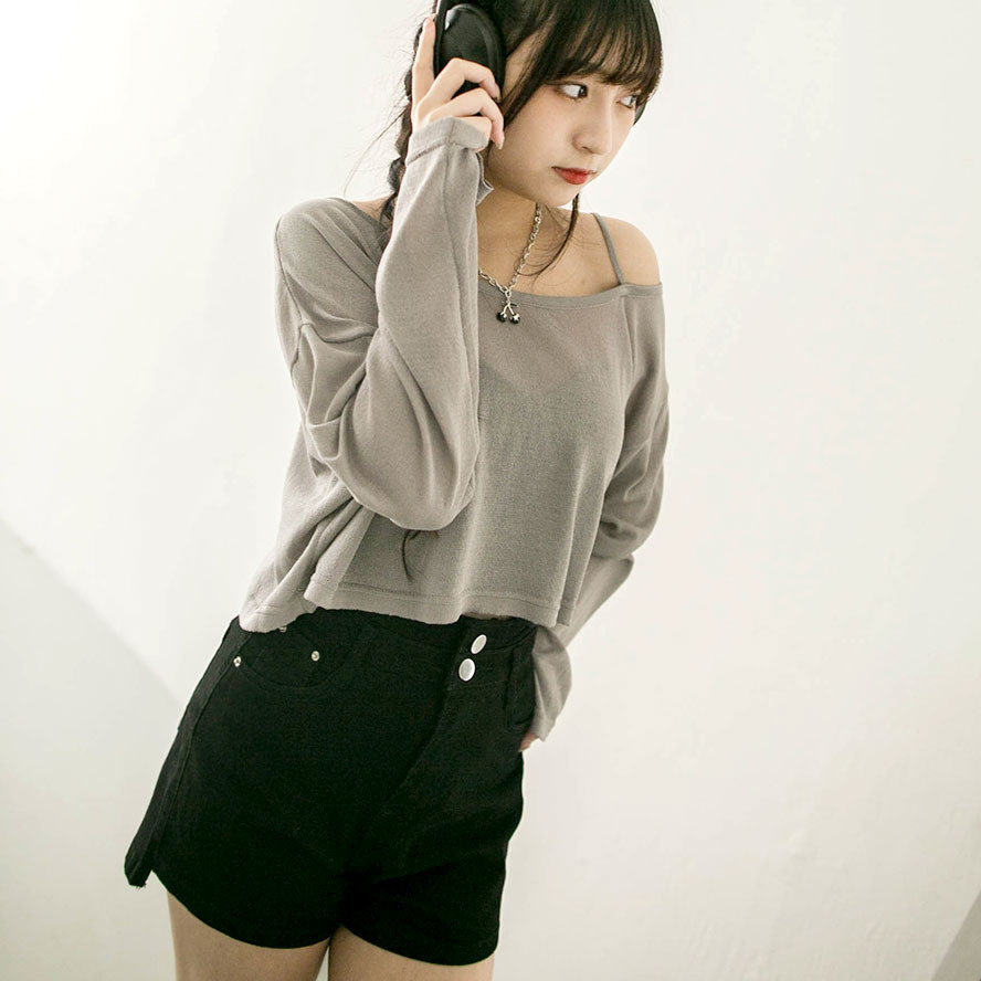 現貨-小性感 單肩帶 短版針織上衣罩衫(4色)【226002】