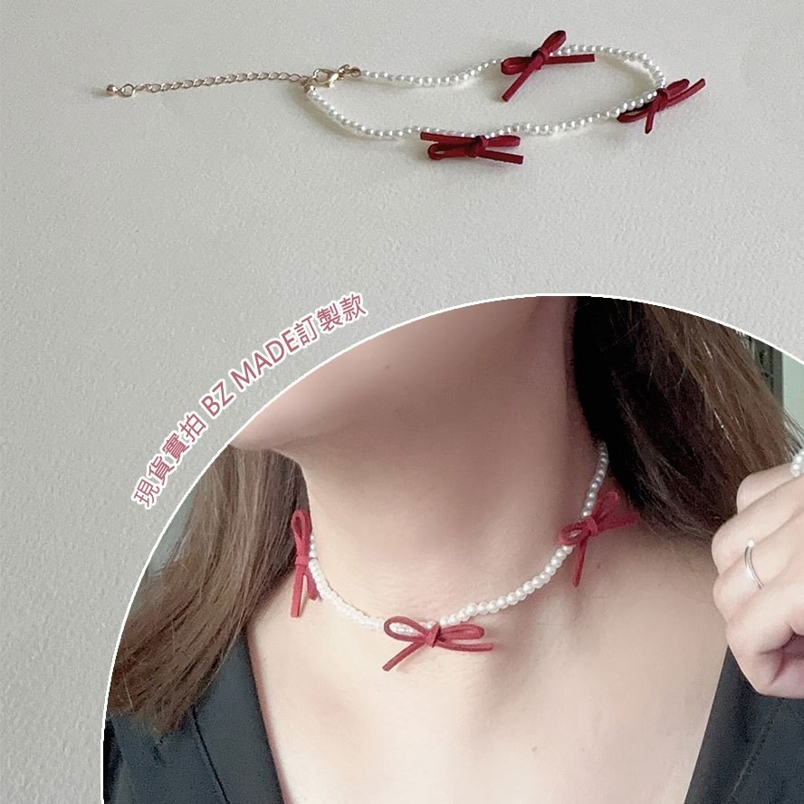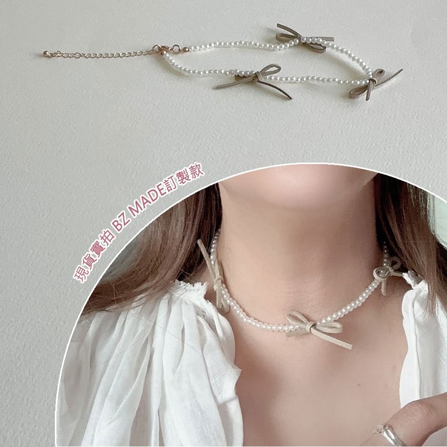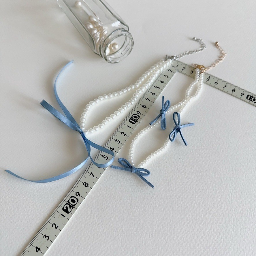 現貨實拍-藍色系~愛心星星頸鍊珍珠項鍊 蝴蝶結項鍊 藍色短項鍊【999】 三蝴蝶結頸鍊 女生鎖骨鏈 韓系珍珠蝴蝶結頸鏈