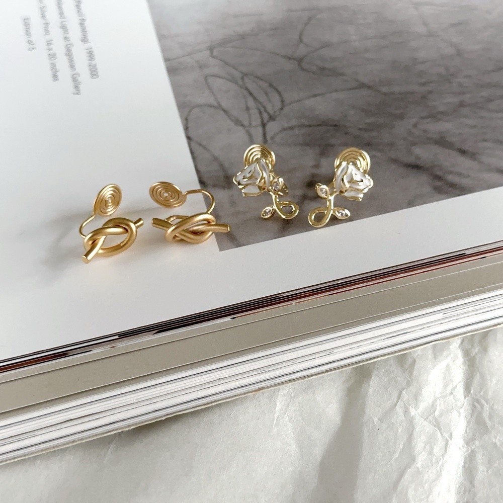 現貨-白玫瑰 / 啞光結 無耳洞_耳夾耳環(附矽膠軟墊)【913017】