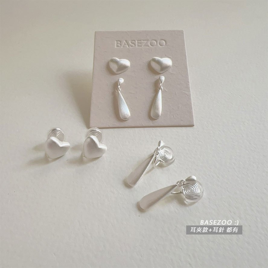 現貨實拍❤韓系高級感~髮絲紋銀白耳環耳夾耳針【913226】優雅~水滴愛心無痛盤香耳夾 百搭圈圈耳環 圓圈無耳洞耳夾