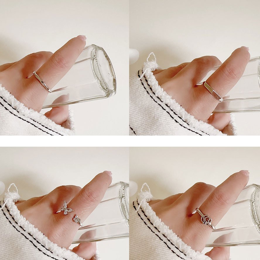 現貨實拍🅦微甜小花戒指 蝴蝶結簡約細戒 切割個性戒指【901125】可調開口戒指 雙層戒指 銀飾戒指 韓系疊搭戒指