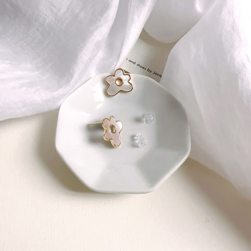 現貨-天然貝母小花 無耳洞 耳夾耳環 銀針耳環(附矽膠軟墊)【913036】盤香耳夾