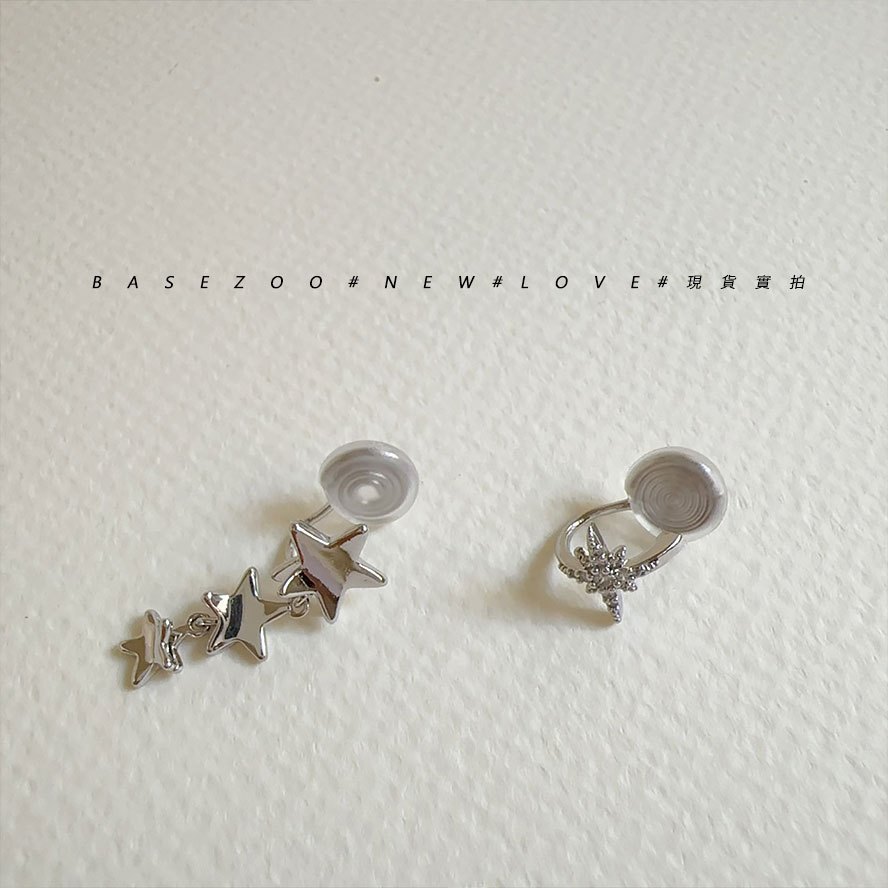 現貨實拍★小鑽十字星圈圈耳環 一排星星耳環 星星耳夾【913227】小閃耀星星 無痛耳夾 無耳洞耳夾耳環(附矽膠軟墊)