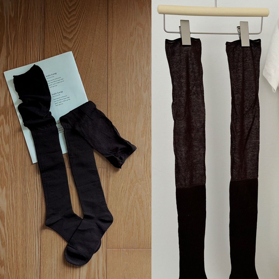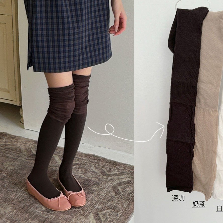 全館現貨-微透顯瘦泡泡襪 膝上大腿襪 日系堆堆襪 【881351】Y2K 坑條直紋 素面學生襪 過膝襪 學生長襪 襪子