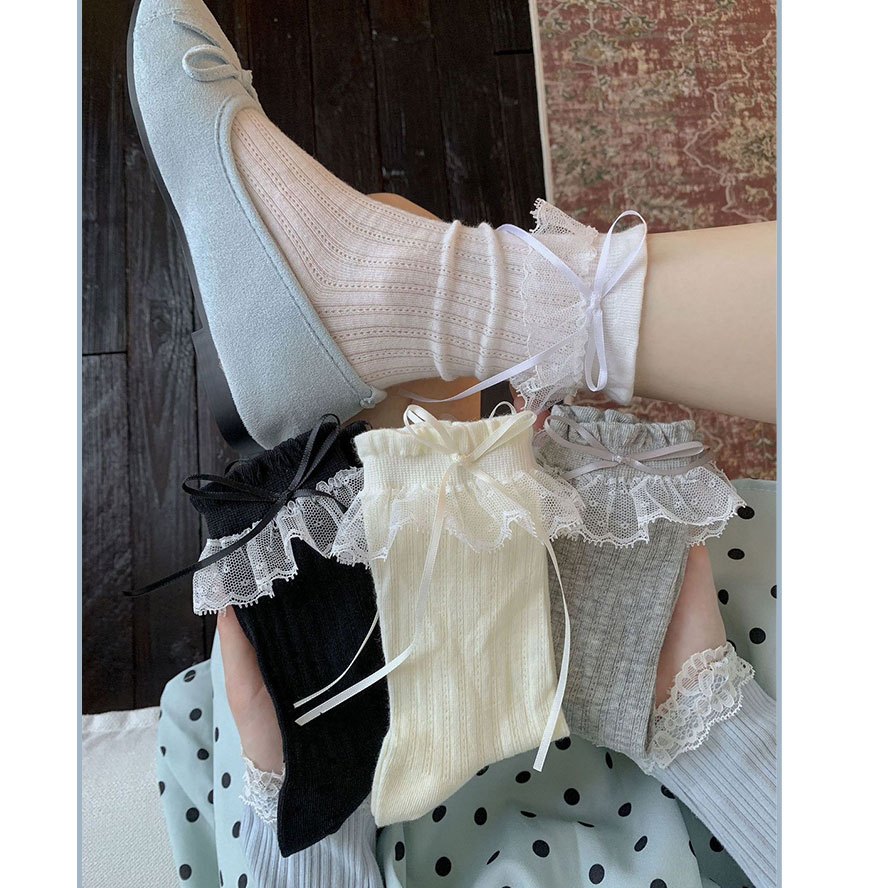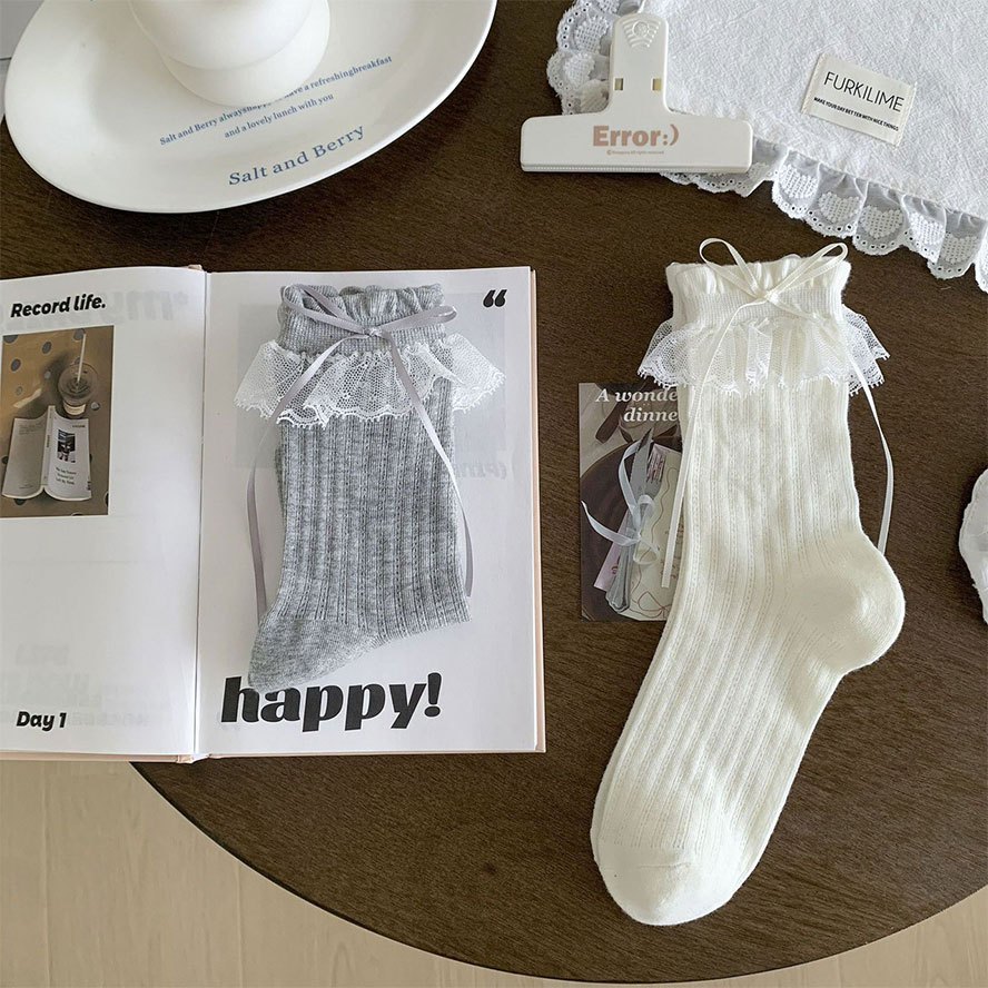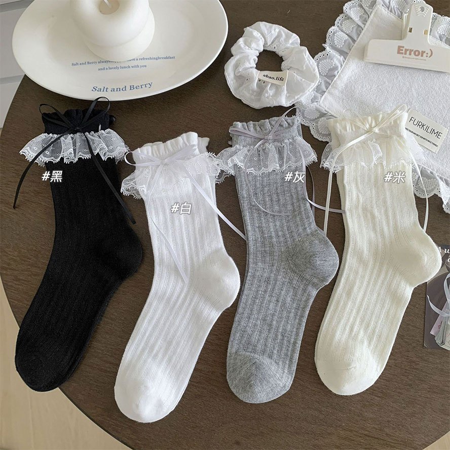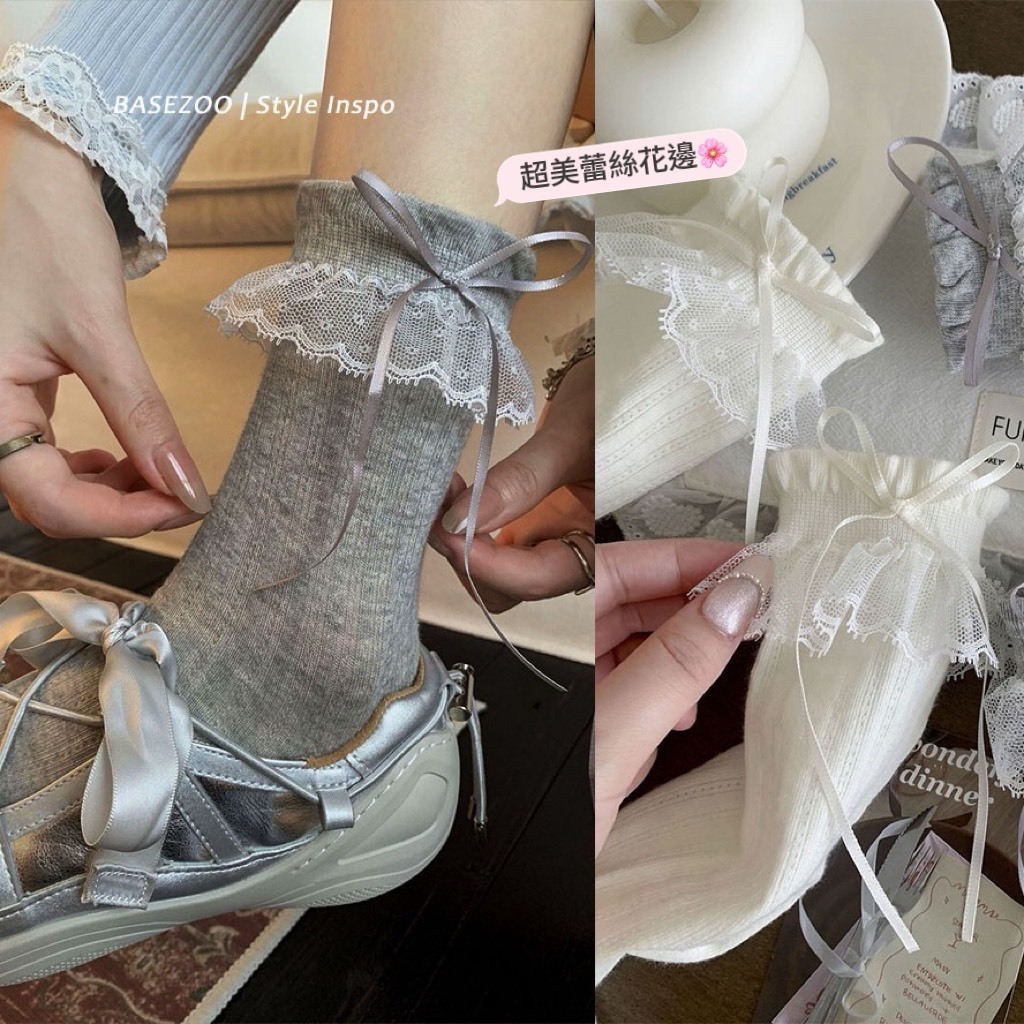 全館現貨- 法式浪漫芭蕾風蕾絲花邊中筒襪 溫柔系緹花蕾絲襪【881859】復古刺繡堆堆襪 瑪莉珍鞋穿搭 芭蕾女伶甜美襪