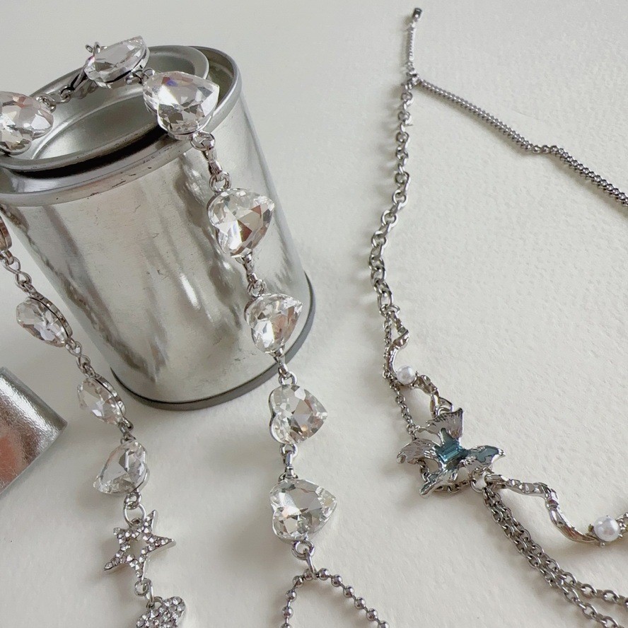 現貨實拍🅦韓系閃耀舞台款 水鑽愛心項鍊 多層次時尚感蝴蝶項鍊【611010】蝴蝶水鑽愛心小眾設計鎖骨鏈 金屬鑽飾頸鍊
