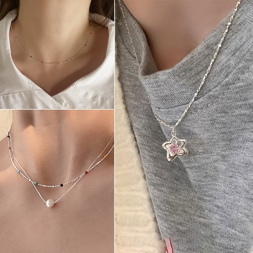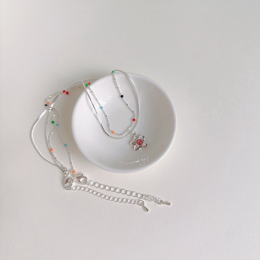 現貨-Y2K韓妞款 五角星粉鑽 彩點細鍊 項鍊【952051】採點銀珠雙層手鍊 細緻手鍊