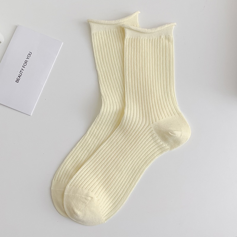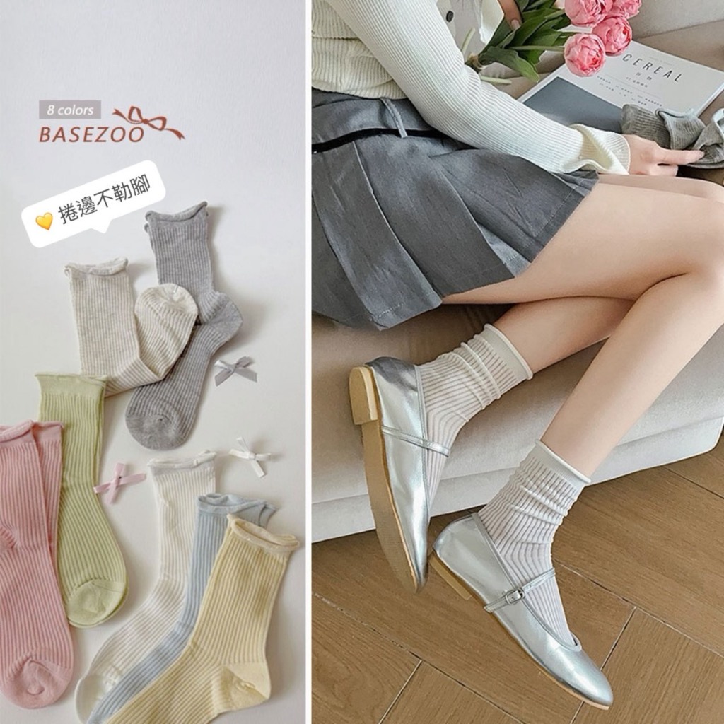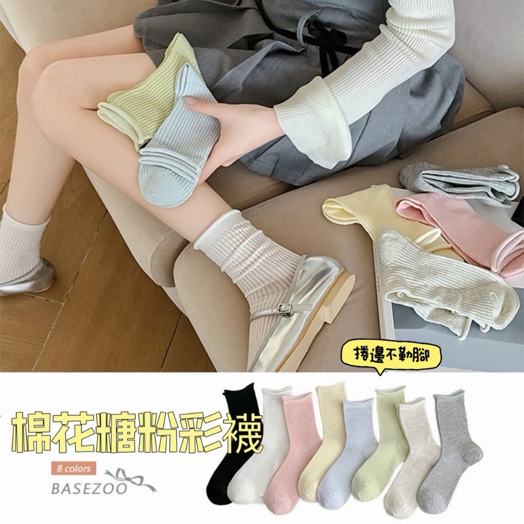 全館現貨-粉彩色系~微微透膚很顯瘦~捲邊小短襪 【881843】素色不勒腳女襪 學院風 日系 穿搭必備糖果色短襪