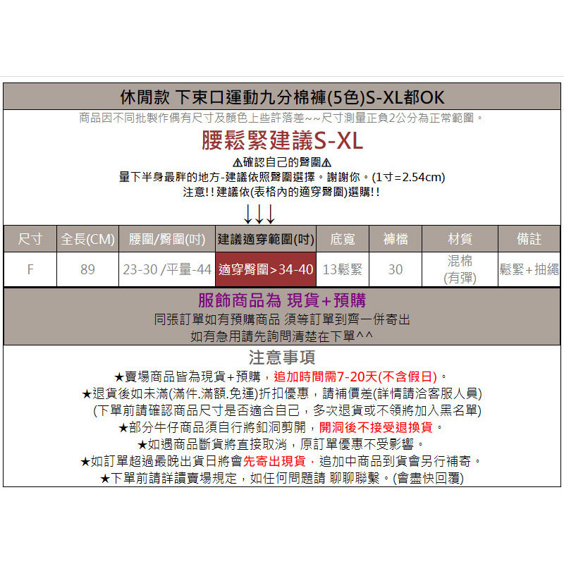 現貨-小個子女孩 下束口運動九分棉褲(5色)S-XL都OK【228009】👌🏻
