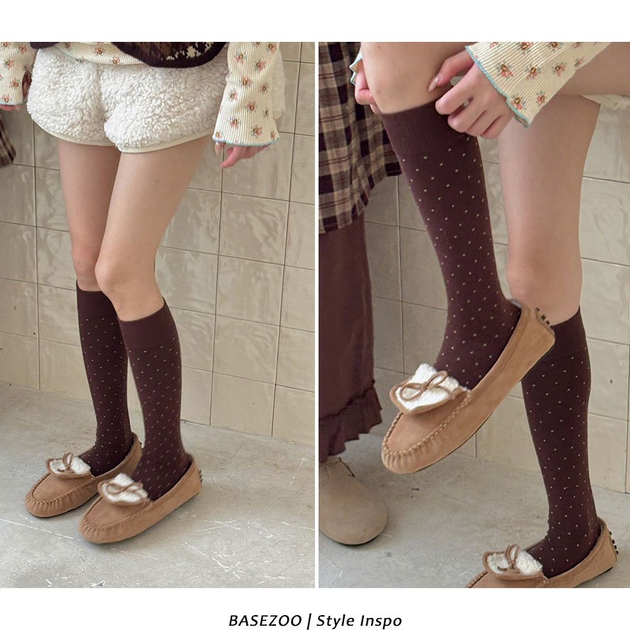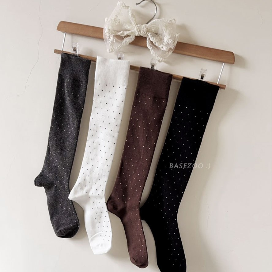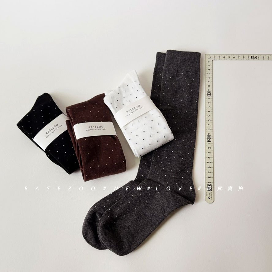 全館現貨-韓系穿搭~復古波點學生襪【881848】日系點點長筒襪 學院風中筒襪 少女長襪 圓點 甜美 黑白 流行襪子