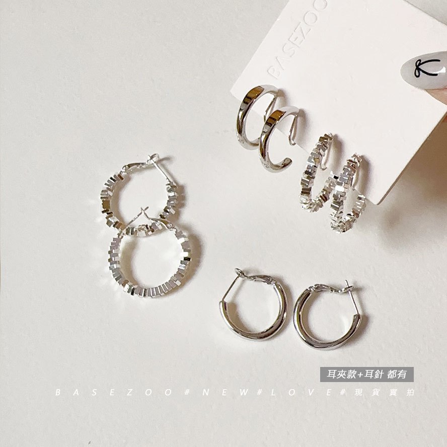 現貨實拍✮韓系圈圈耳環 圈圈耳夾 圈圈耳扣 碎銀圈圈無耳洞耳夾耳環【913220】百搭圓圈盤香耳夾 (附矽膠軟墊)