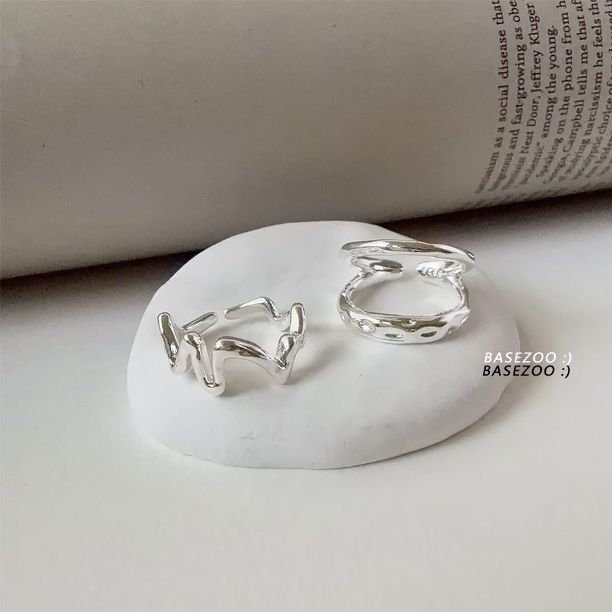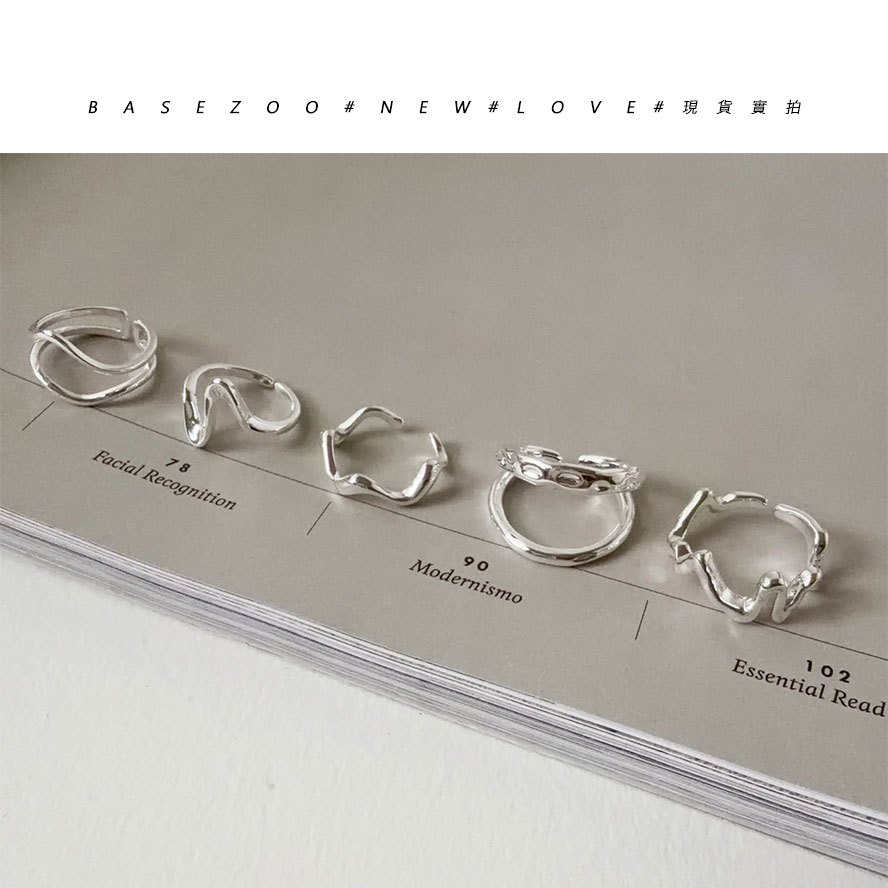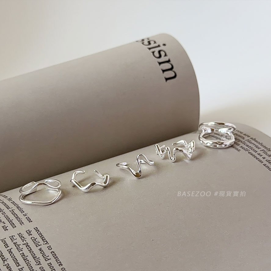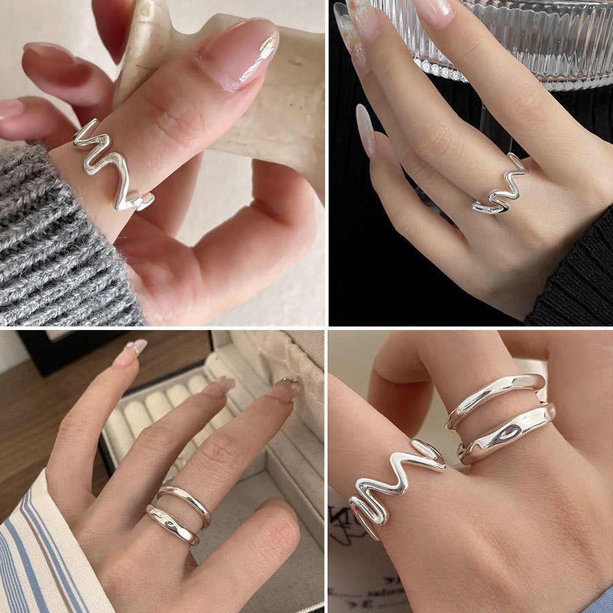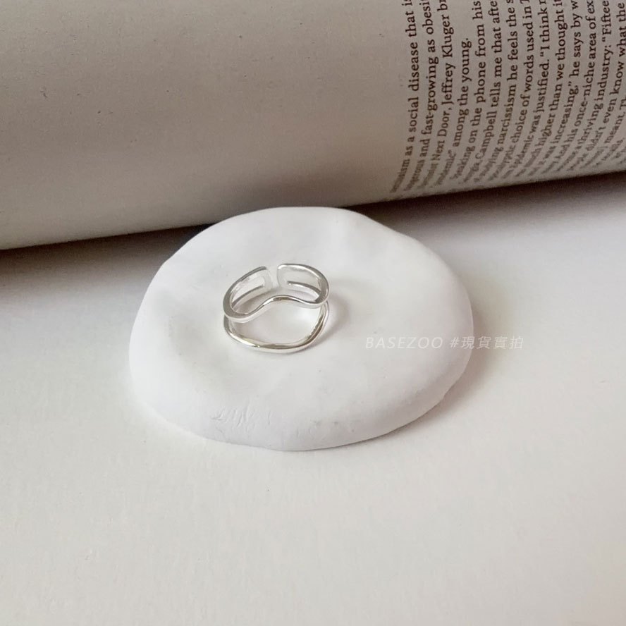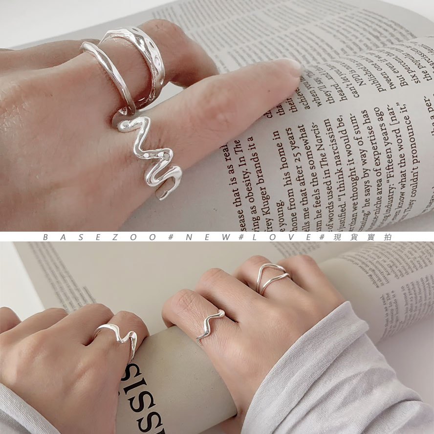 現貨-疊戴設計~幾何線條波浪戒指 個性流體不規則開口戒 【901106】韓系簡約液態感戒環 歐美冷淡風雙層食指戒