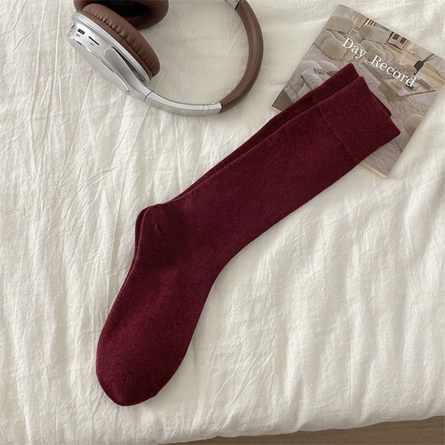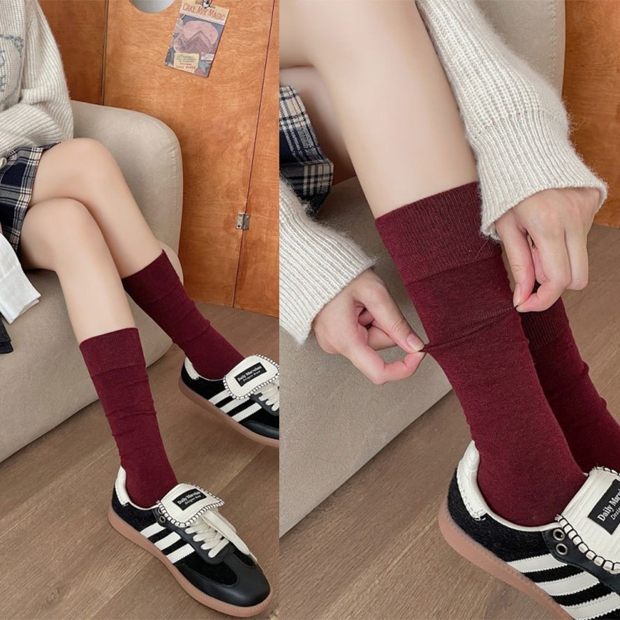 【全館現貨】 學院風復古酒紅 灰色襪子 顯瘦堆疊襪百搭韓系學生襪 顯瘦長度中筒堆堆襪 四季皆宜 純色長襪【881834】
