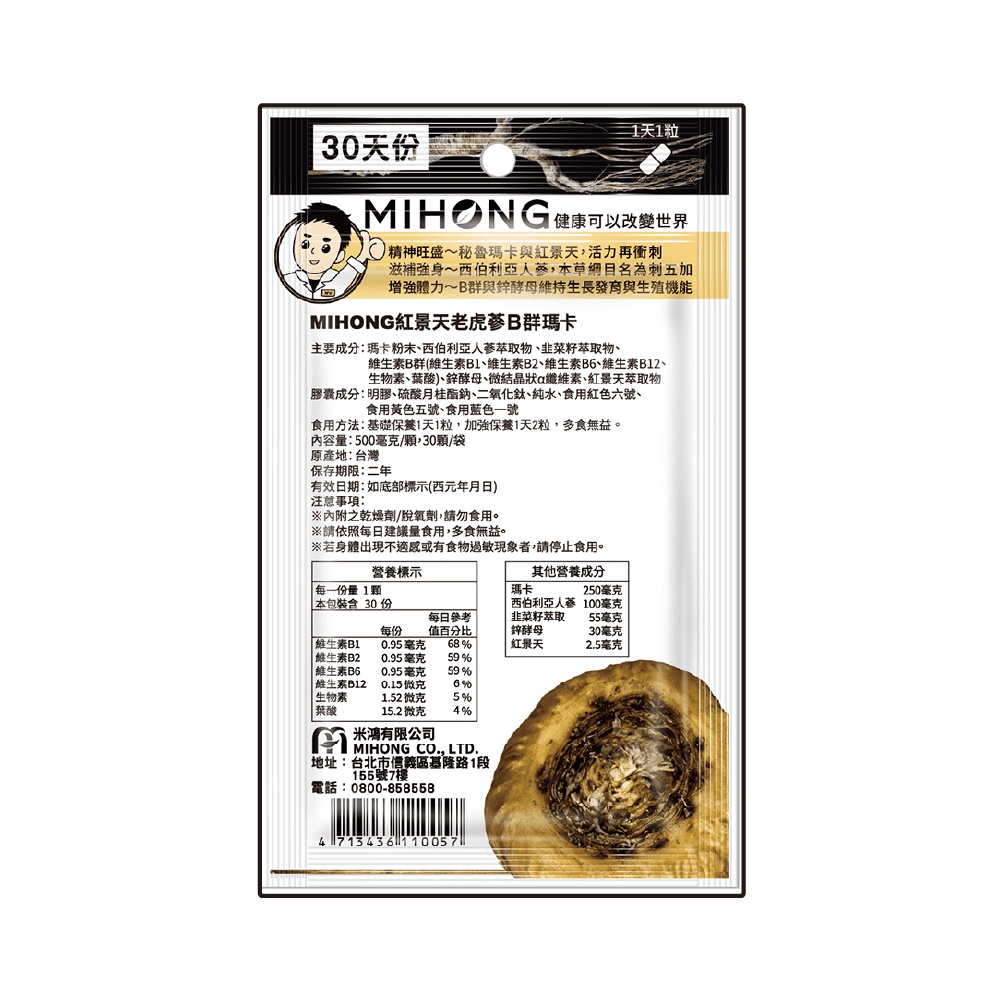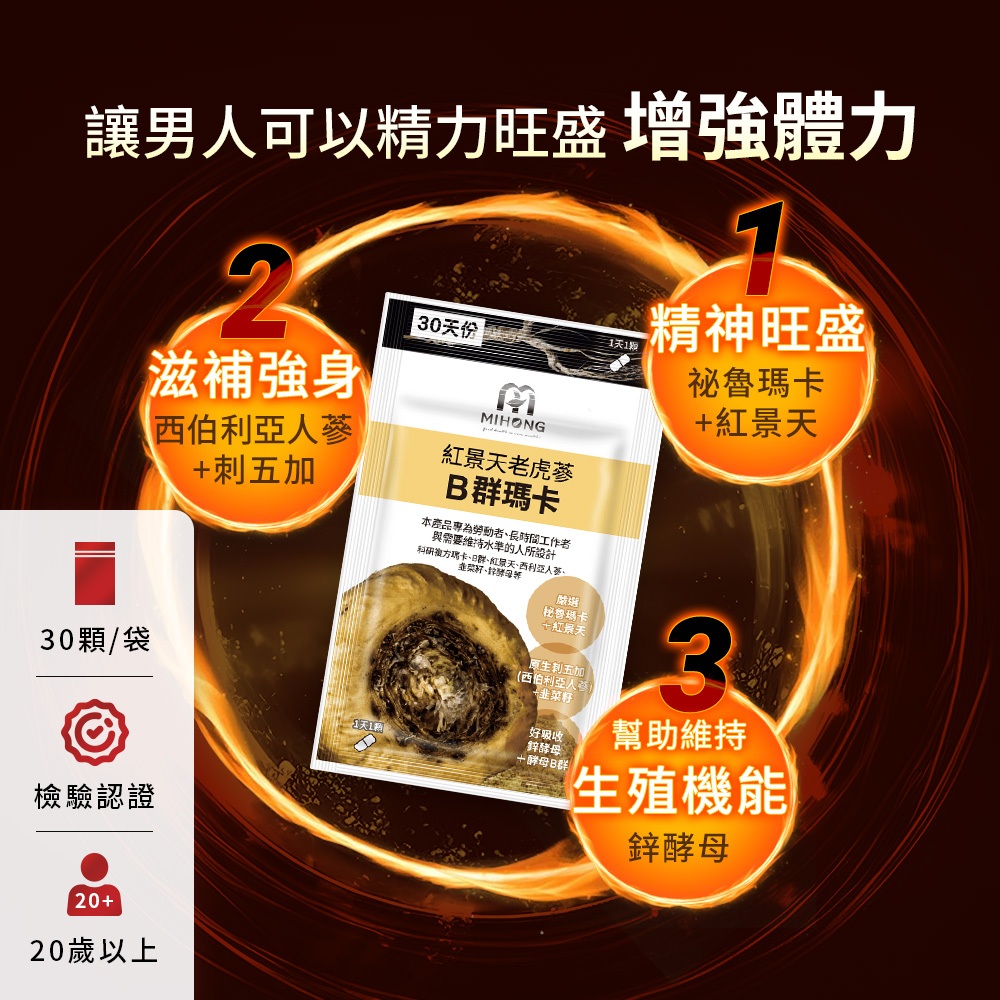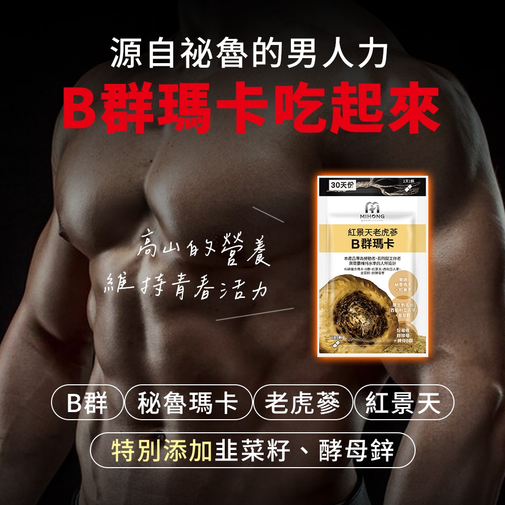 MIHONG米鴻生醫 紅景天 老虎蔘 B群 瑪卡 (30顆/包) 鋅 MACA 馬卡 男性保健食品 瑪卡 保健食品