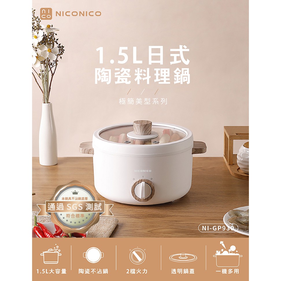 【NICONICO】1.7L日式陶瓷料理鍋 電火鍋NI-GP930