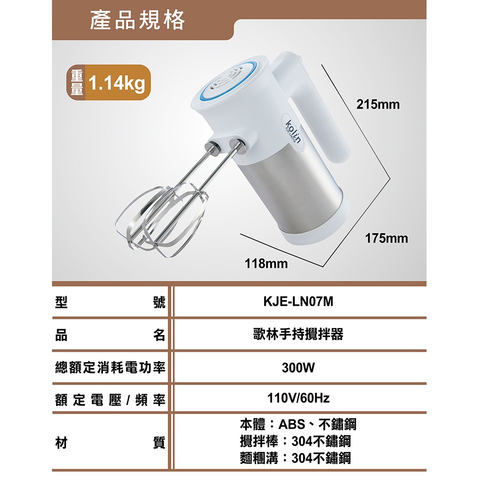 【歌林】手持攪拌器 打蛋器KJE-LN07M