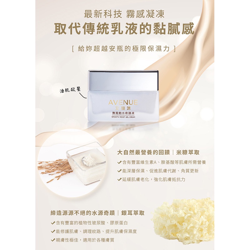 [台灣穀堡]AVENUE 艾馥洣 無瑕飽水奇蹟凍 50ml 夏日保養 清爽 保濕 隱形面膜 米保養品 玻尿酸 曬後保養