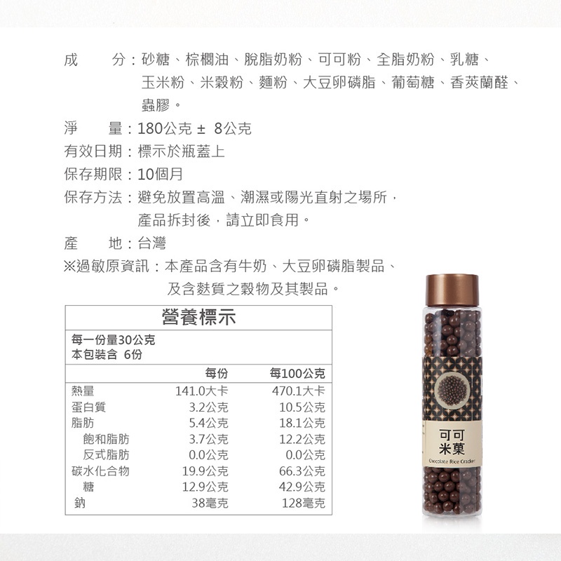 [台灣穀堡] 可可米菓 180g 現貨 零嘴 零食 餅乾 糖果 巧克力球 米果 古早味糖果 滋露 小時候零食
