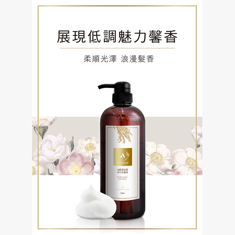 [台灣穀堡]AVENUE 白麝香滋潤 米的洗髮精 700ml 米萃取 白麝香洗髮精 滋養秀髮 頭皮清潔 迷人香氣
