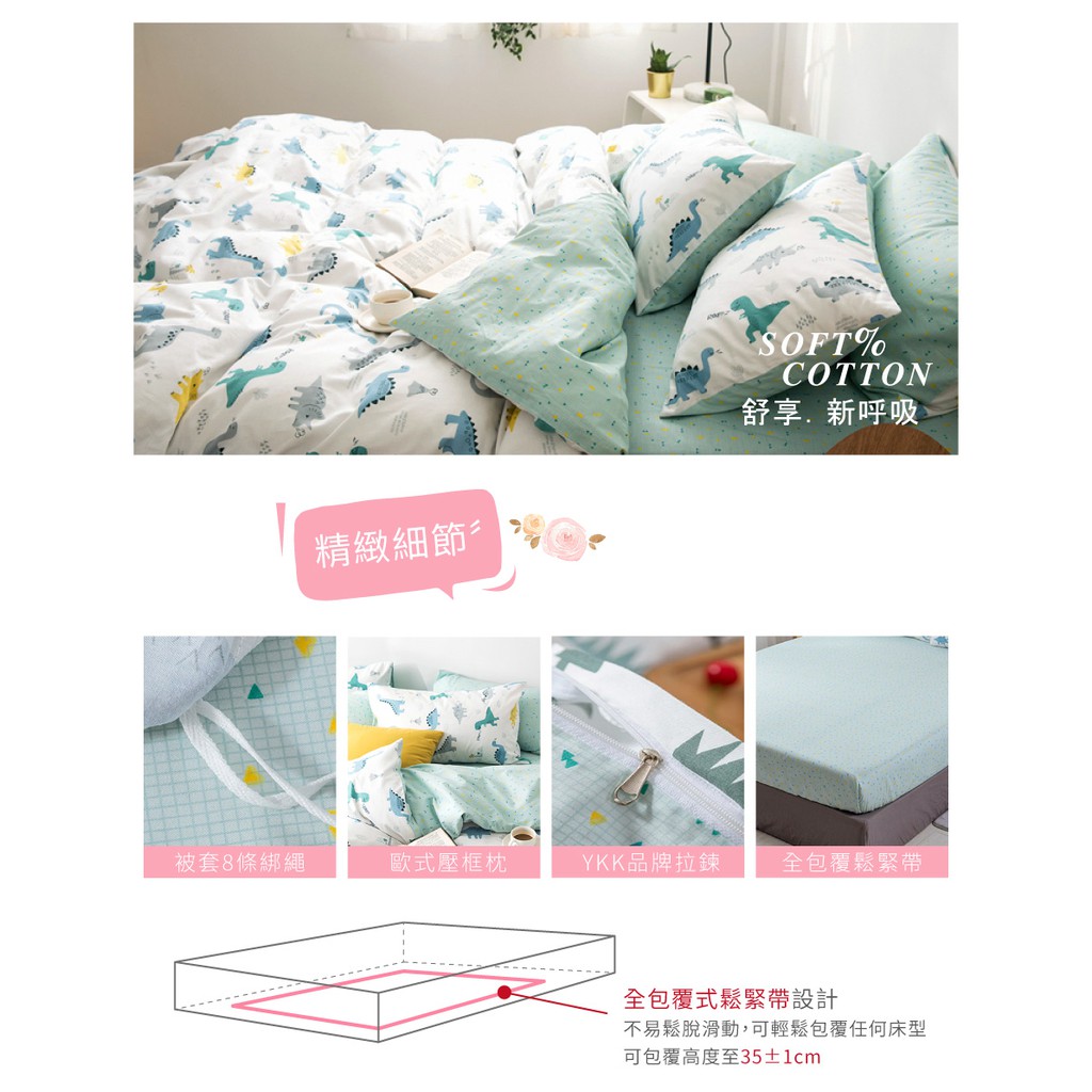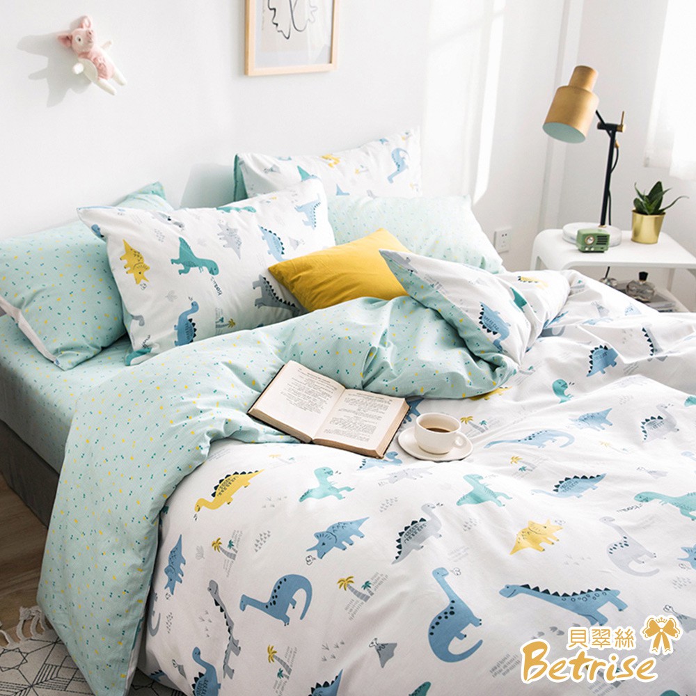 【Betrise淘氣恐龍】100%精梳棉 銀離子防蹣抗菌/舖棉兩用被/床包組 床高35cm 吊牌品質認證 可超取