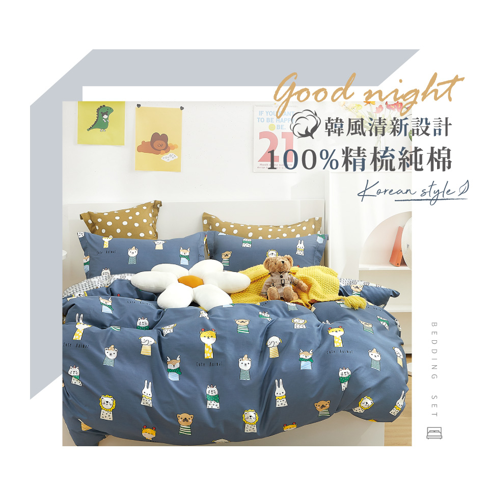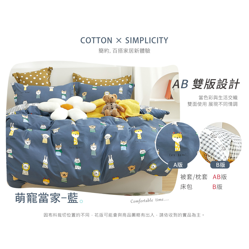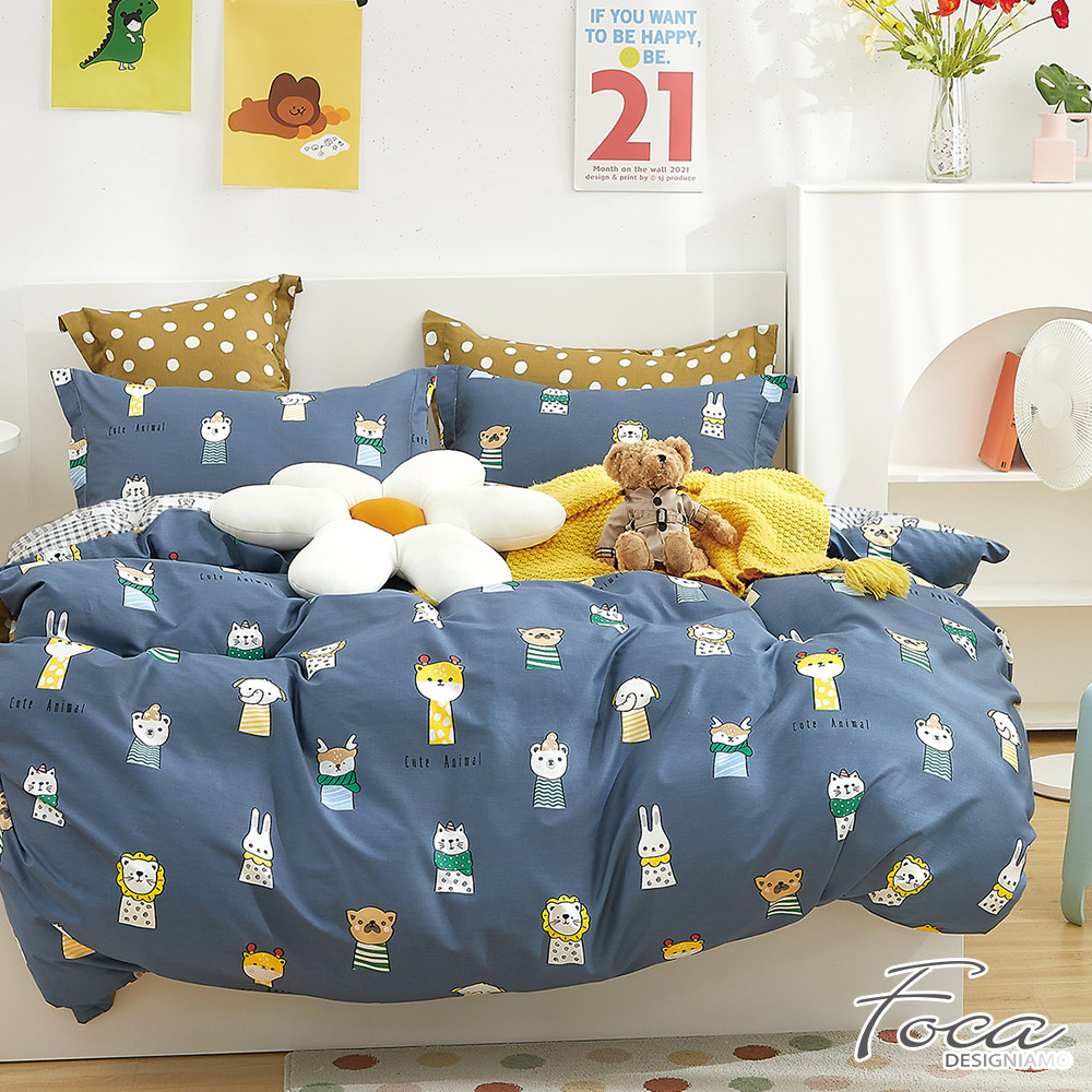 【FOCA萌寵當家-藍】單人/雙人/加大/特大-韓風設計100%精梳純棉薄枕套床包組/兩用被床包組