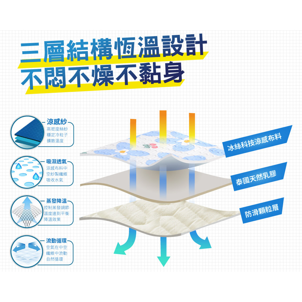 【Betrise櫻桃花季】雙/加 COOL+抗菌透氣冰絲天然乳膠涼蓆-嚴選泰國乳膠-贈送同款式枕套