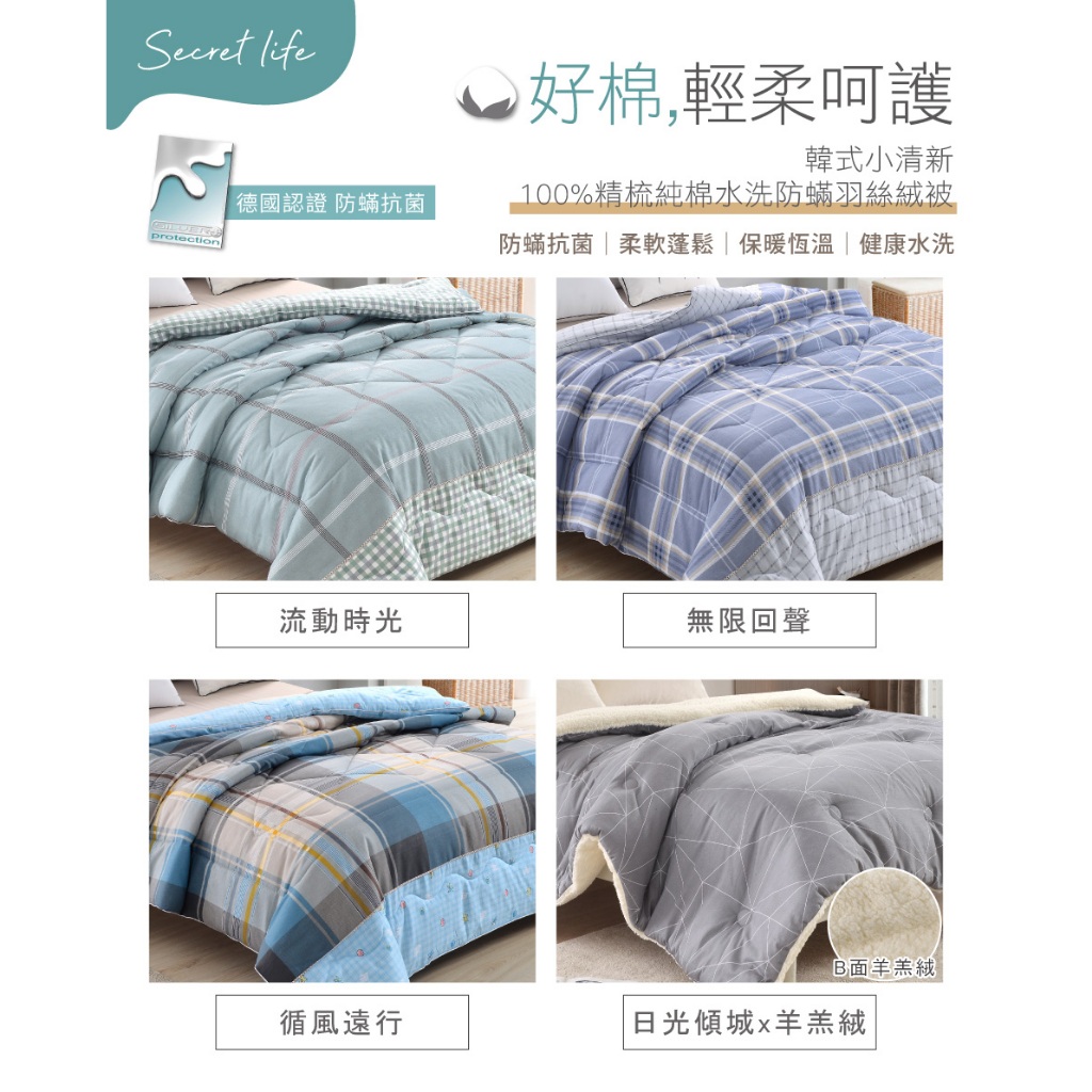 【FOCA 多款任選】可水洗/機洗 韓式100%精梳純棉銀離子防蹣抗菌羽絲絨暖冬被-大尺寸180x210cm