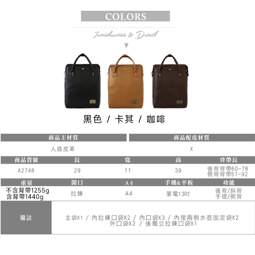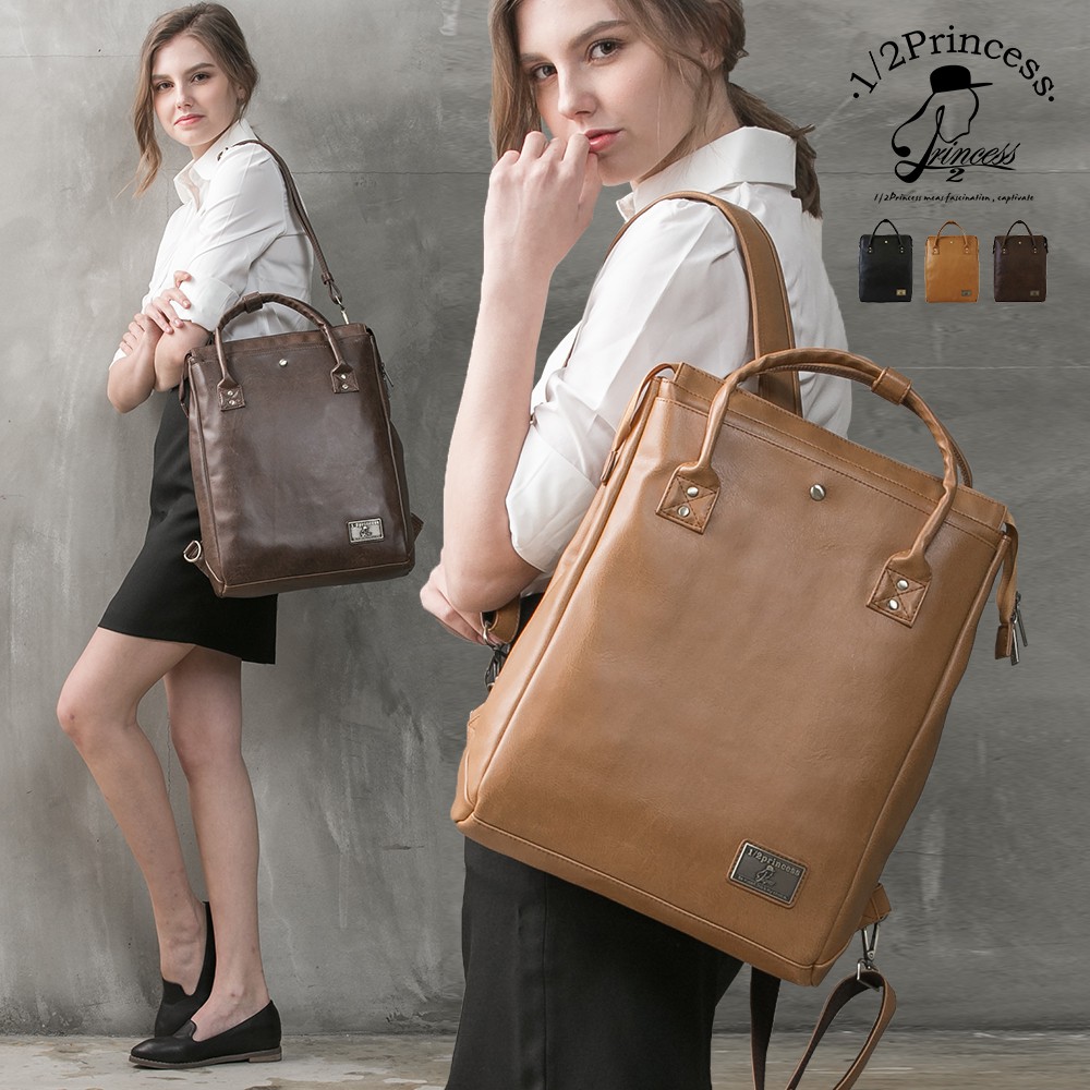 1/2princess全新升級三代復古皮革多層4WAY商務City後背包 -3色【A2748-1】