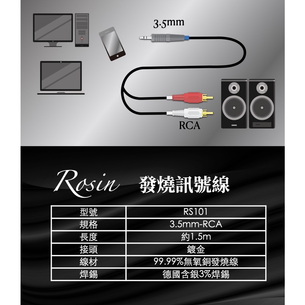 ROSIN RS101 發燒訊號線 1.5M 無氧銅發燒音響級線材 3.5mm轉RCA【官方展示中心】