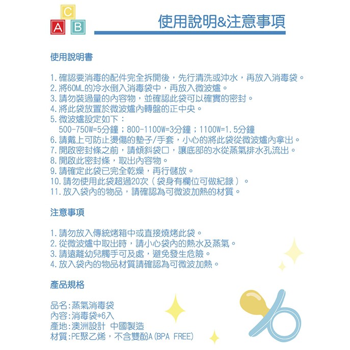 澳洲 Cherub Baby 蒸氣消毒袋 (6入)