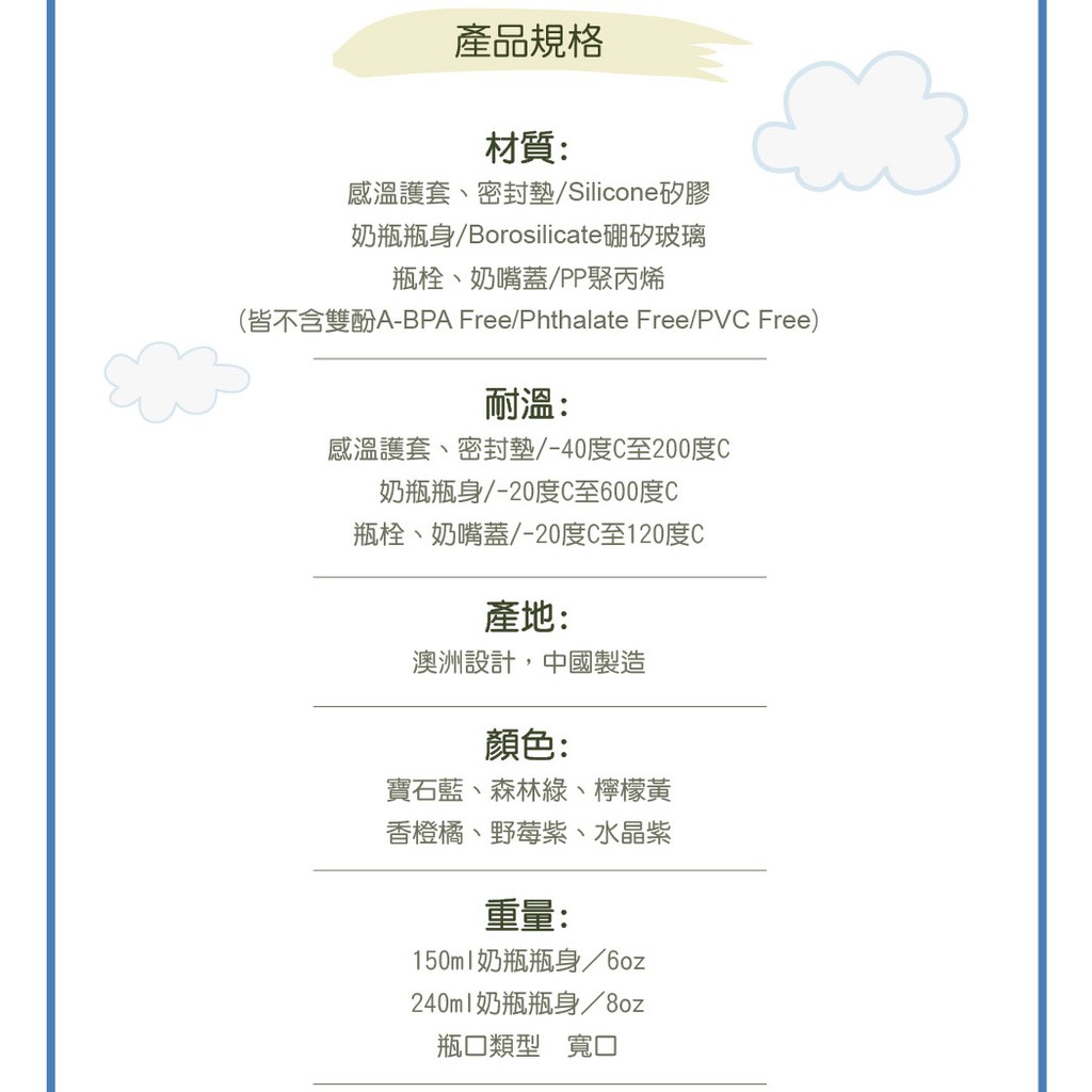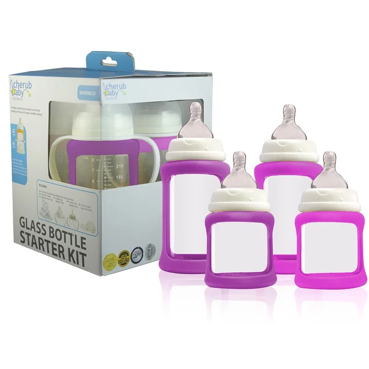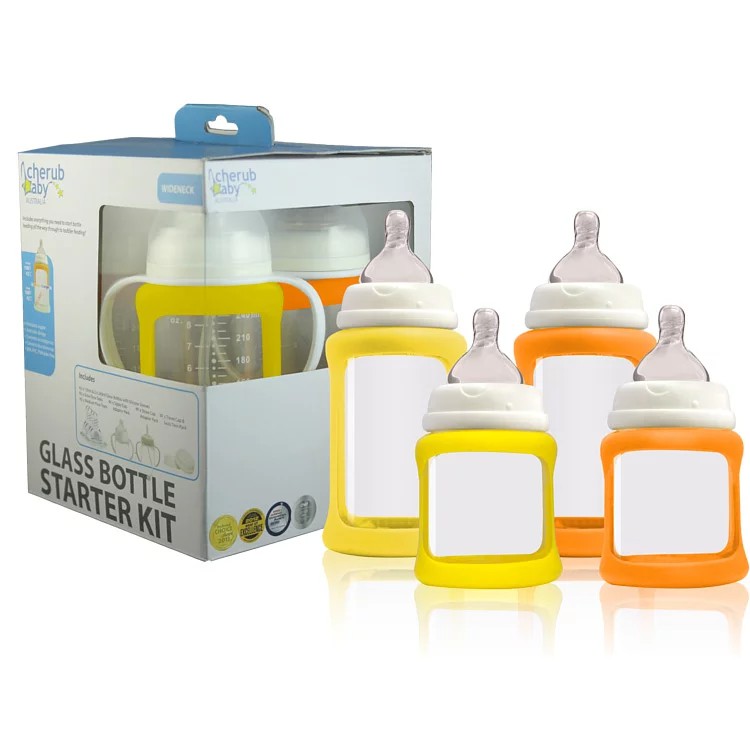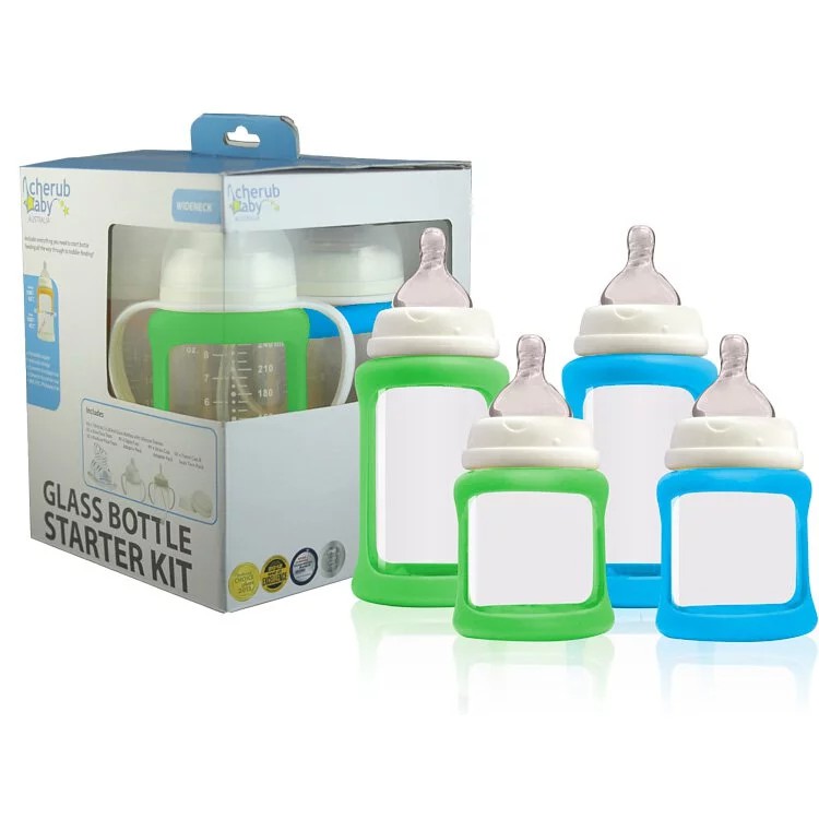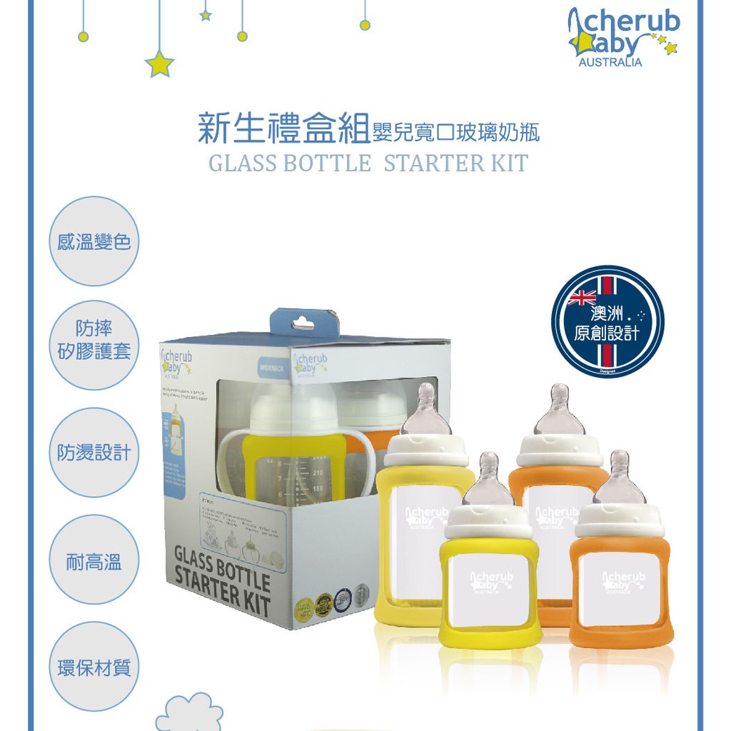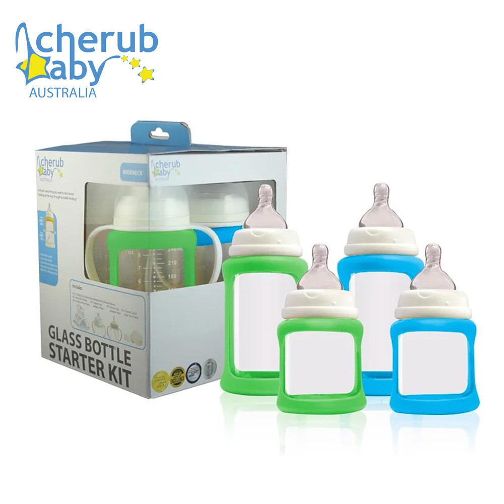 澳洲 Cherub Baby 防摔寬口玻璃奶瓶禮盒組(四入)