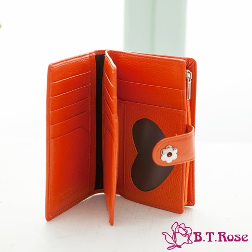 【B.T ROSE】花扣零錢中夾-橘色(優質真皮系列)