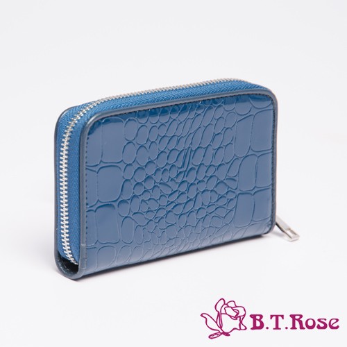 【B.T ROSE】優質皮革漆皮實用藍色中夾