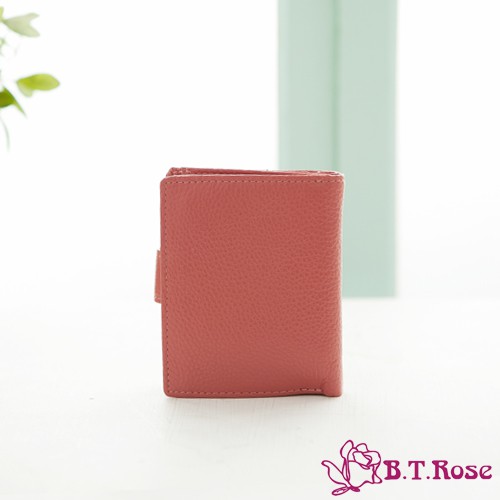 【B.T ROSE】花扣零錢短夾-深粉(優質真皮系列)