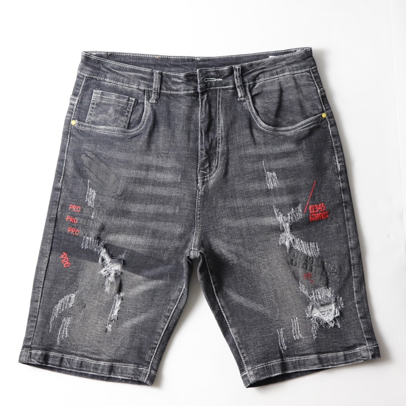 RETOP 牛仔系列 數字塗鴉刷破牛仔短褲 黑 SM221757-02