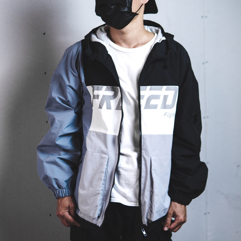 RETOP 衝鋒反光拼接防潑水風衣-黑 RM221613-02
