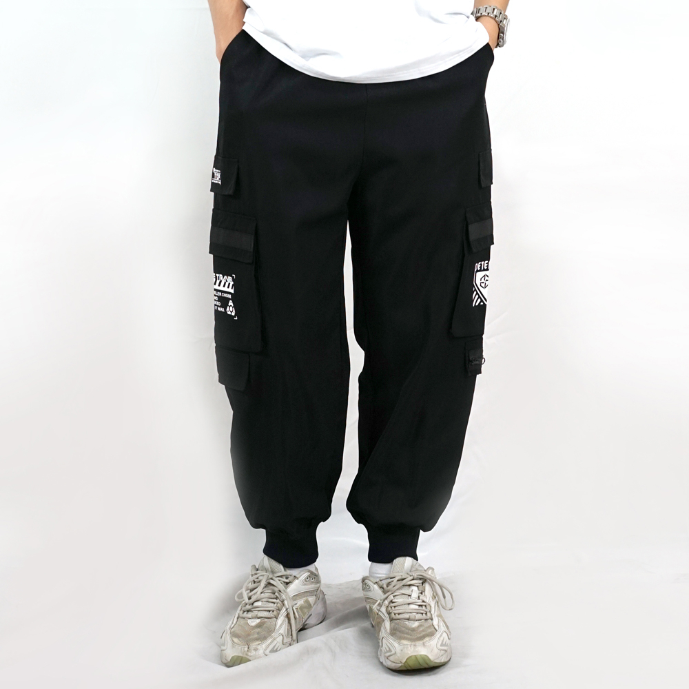 免運【RETOP】工裝軍風 星際旅人多口袋工裝褲 黑 工作褲 休閒長褲 機能褲 軍褲 黑色長褲 男休閒褲 潮流 束口褲