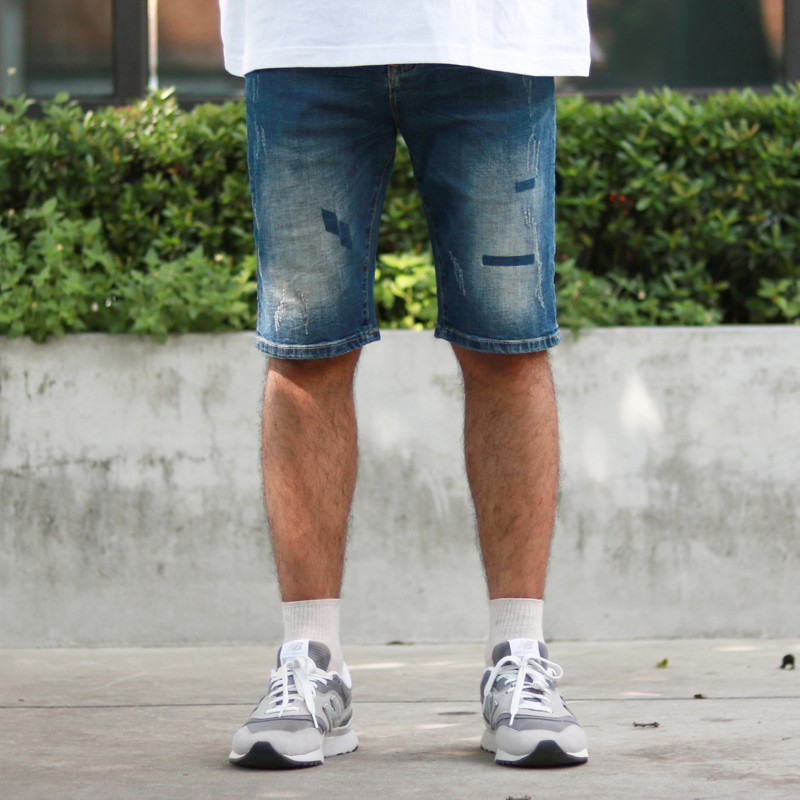 RETOP-方塊刷色彈力牛仔短褲-藍 RM211701-05