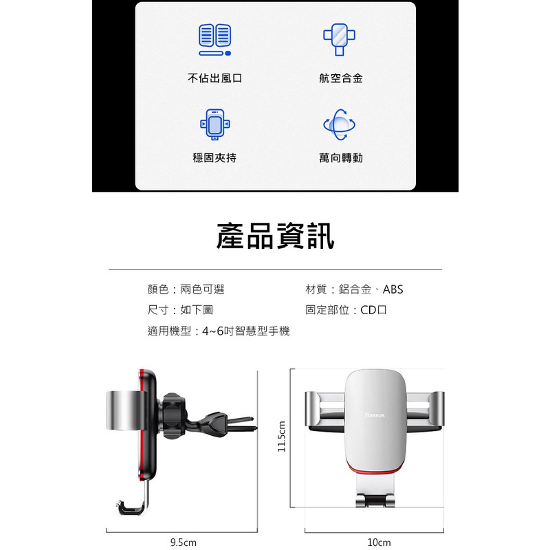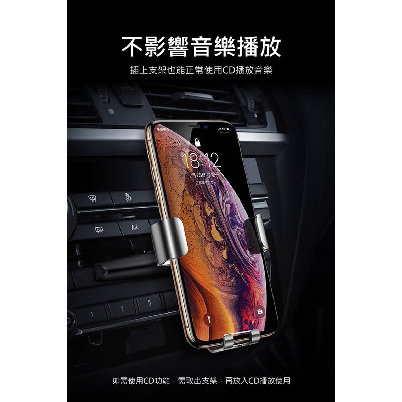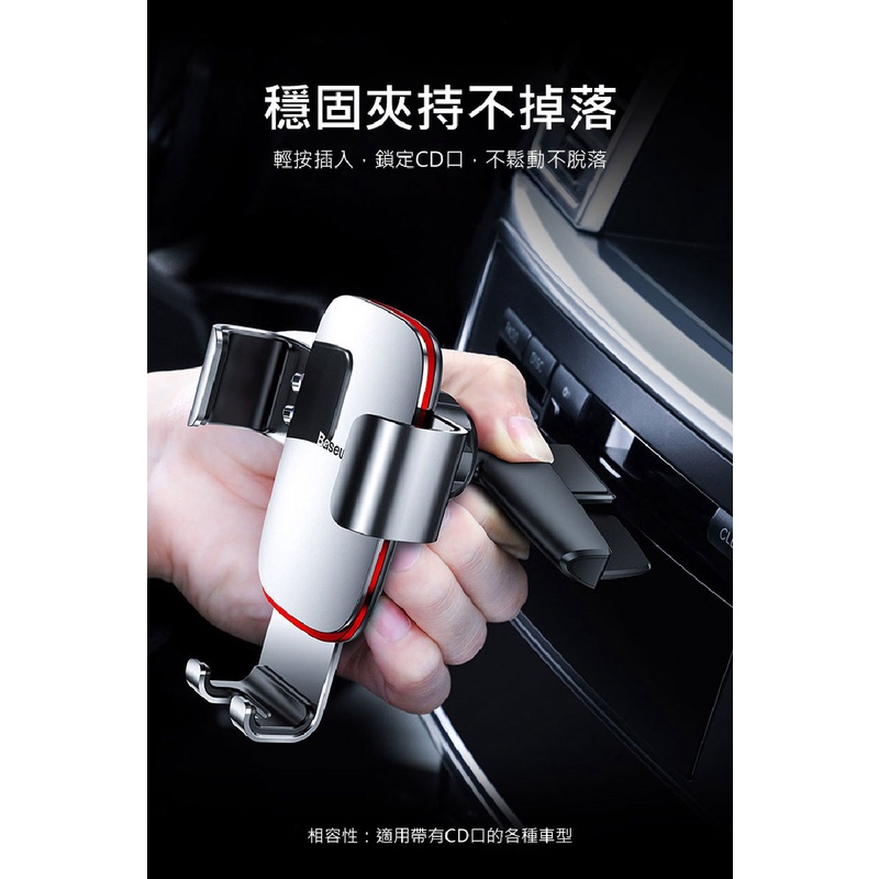 Baseus 倍思 金屬時代CD槽重力手機支架-(銀/黑)