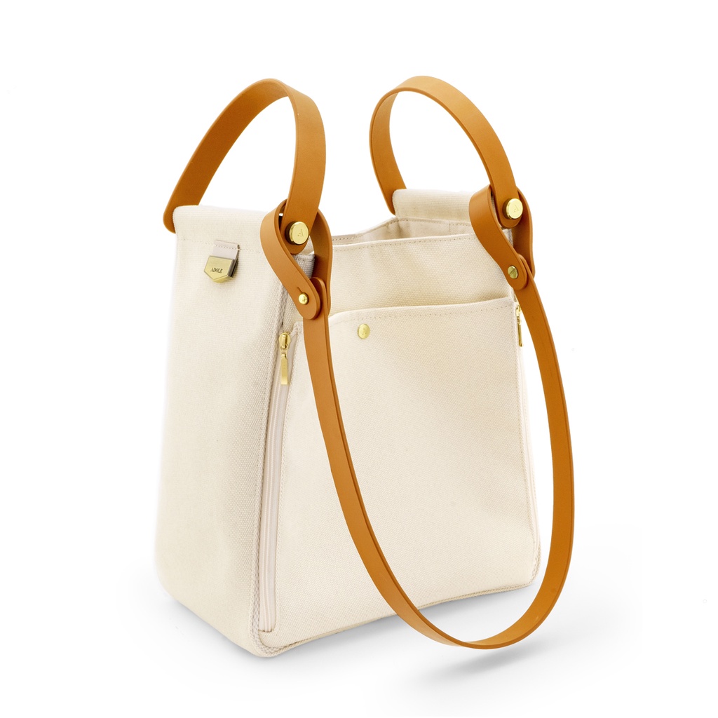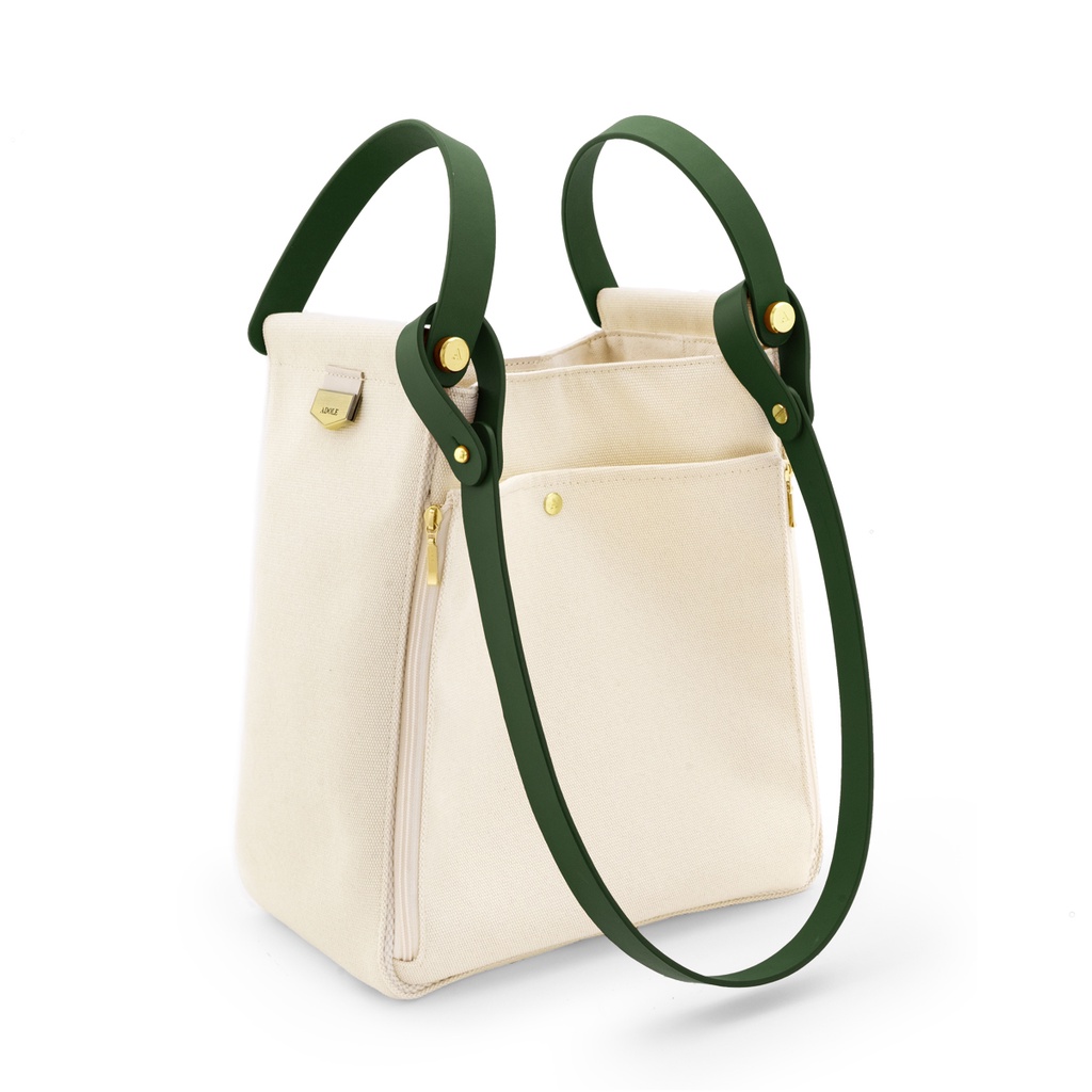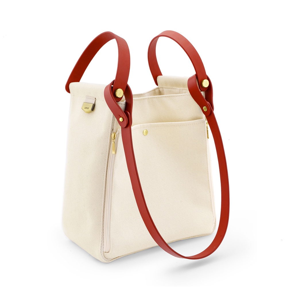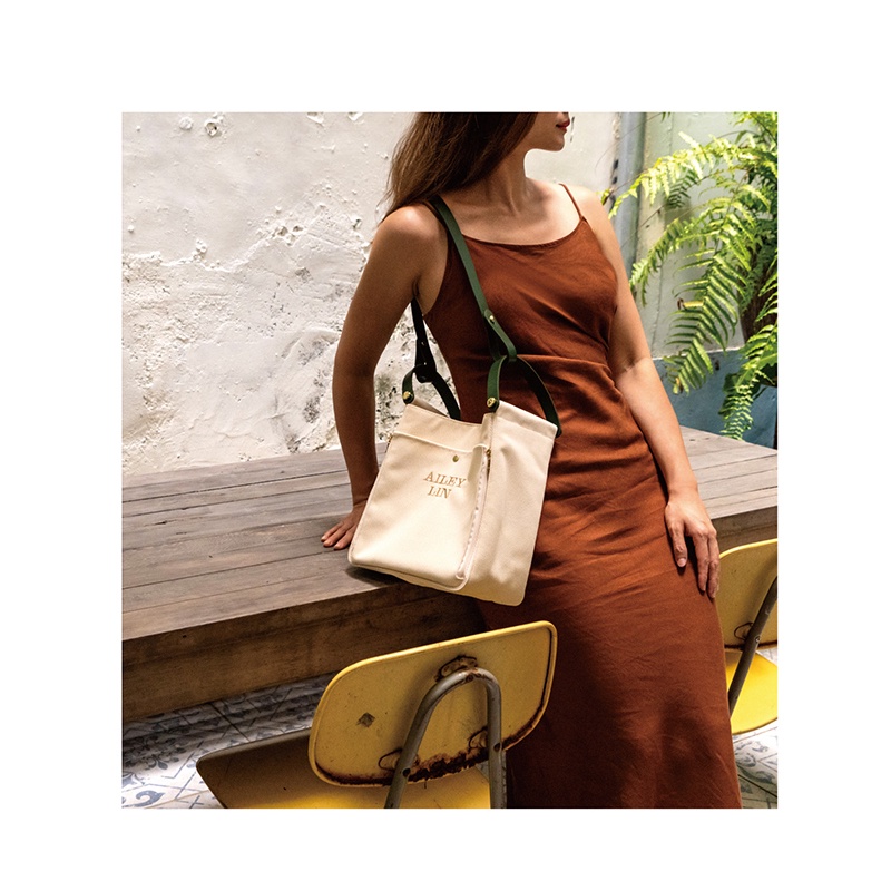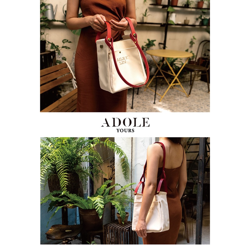 【ibaobao愛包包】YOURS刺繡手提肩背包/米帆布包+多色肩帶