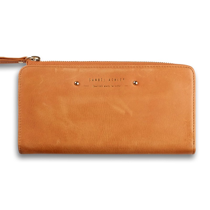 Samuel Ashley 美國軟牛皮 拉鍊長夾 - 駝色【官方授權】ibaobao愛包包