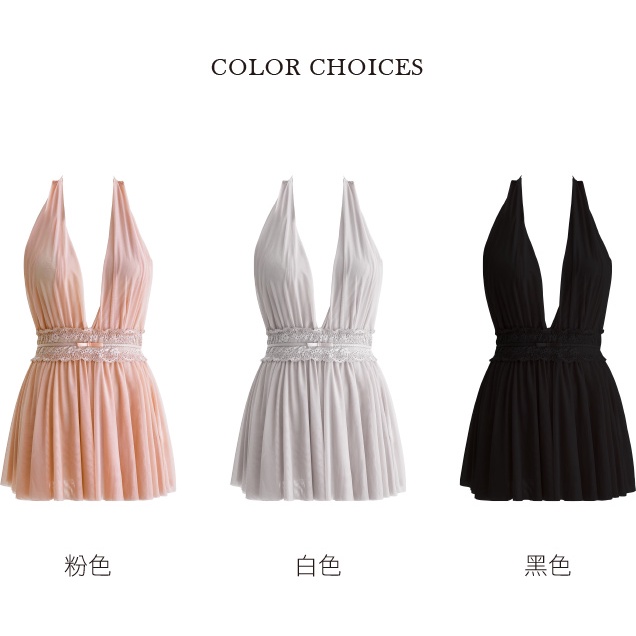 Choco Shop 地中海戀人 蕾絲雪紡柔紗掛脖露背性感睡衣(白色) Free Size