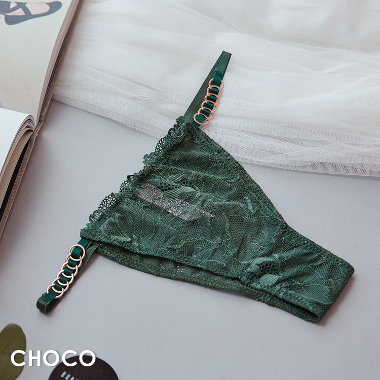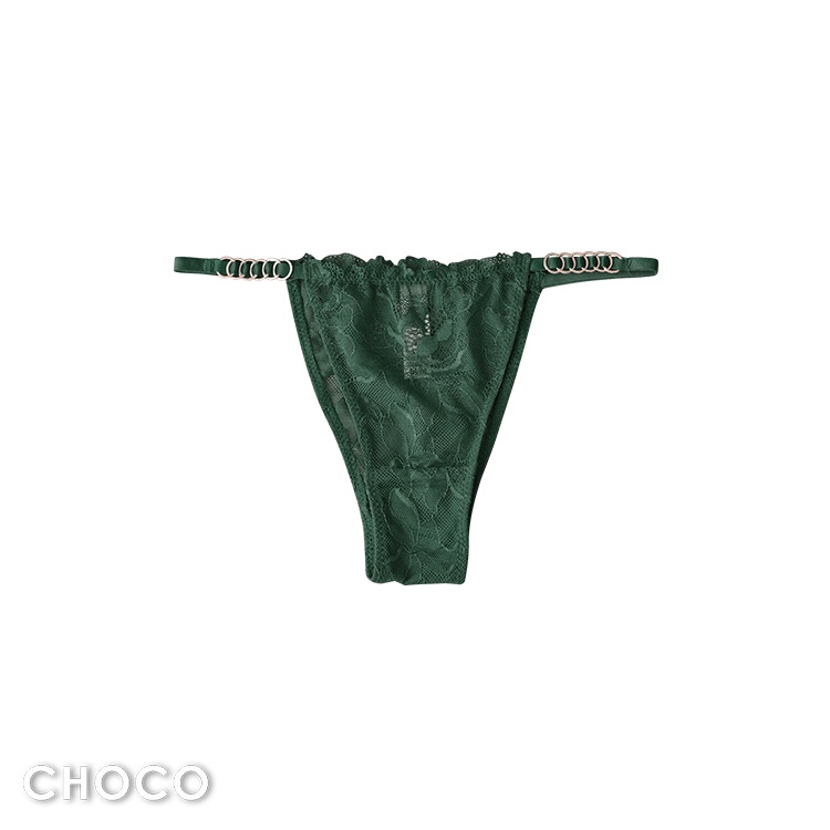 Choco Shop 薔薇情話 鏤空圓型環扣法式透膚蕾絲性感丁字褲(綠色) M-L