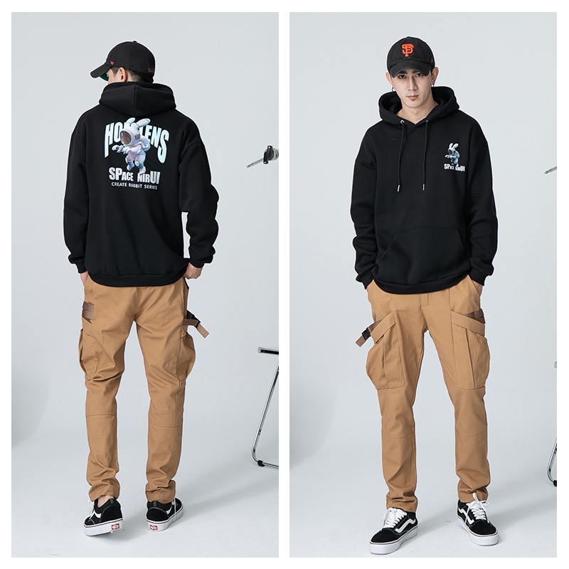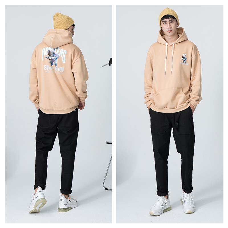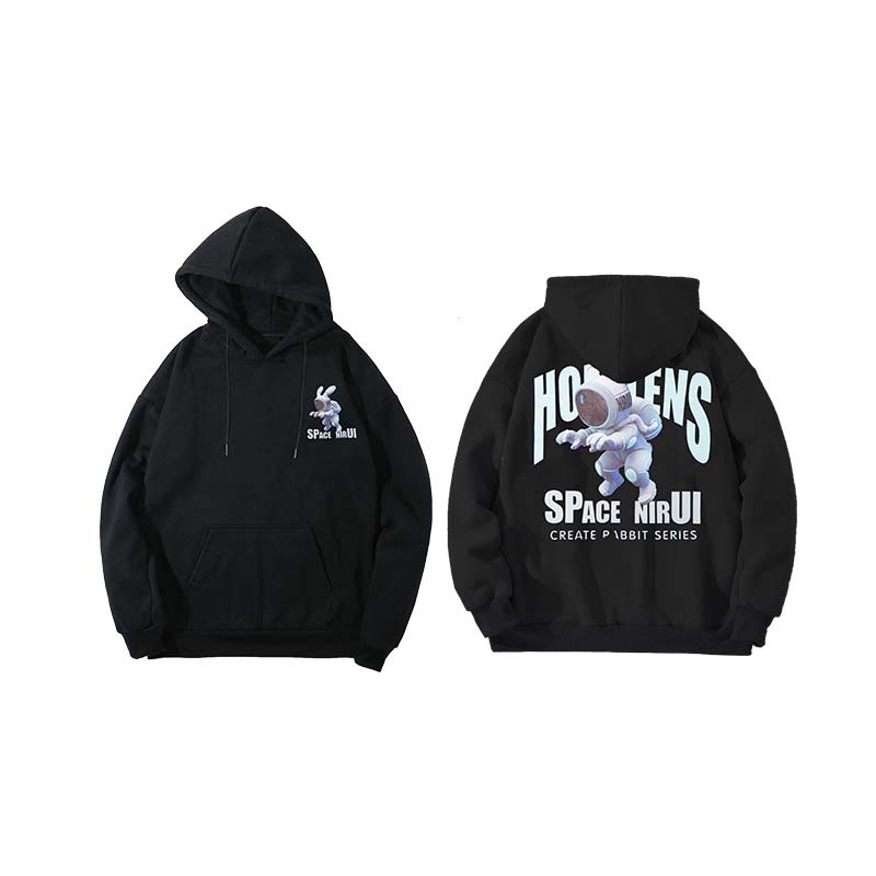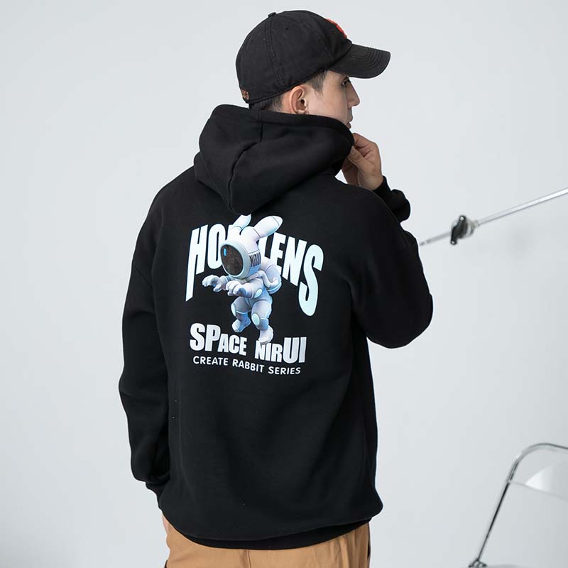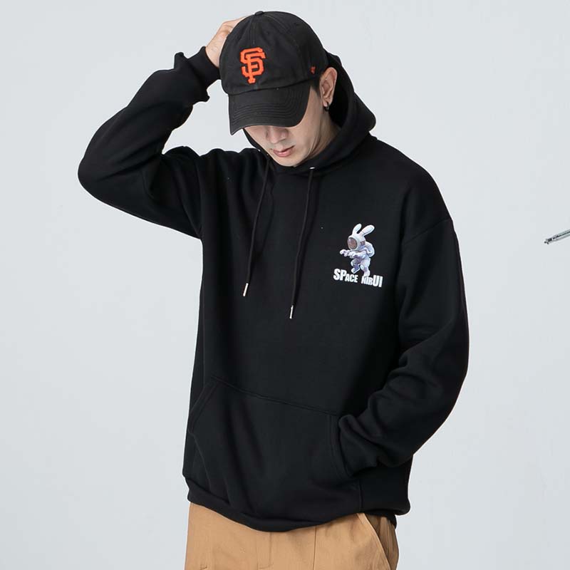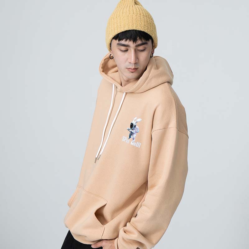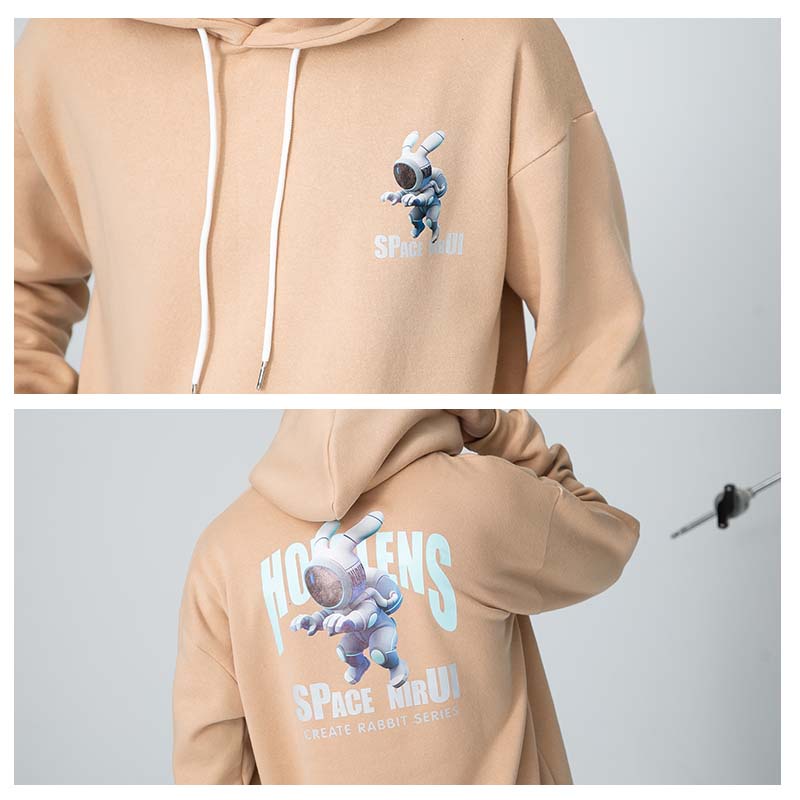 AOYAMA 潮流翻玩 惡搞太空兔 寬鬆落肩帽T【PC8329】大學T 寬鬆 情侶 寬鬆長袖 青山 街頭 保暖刷毛