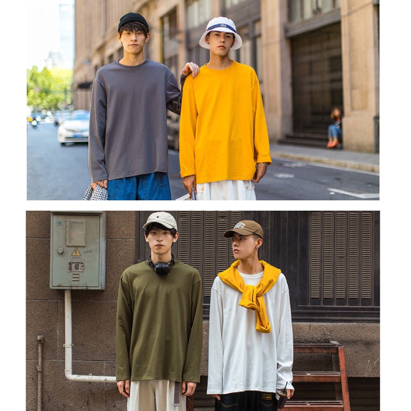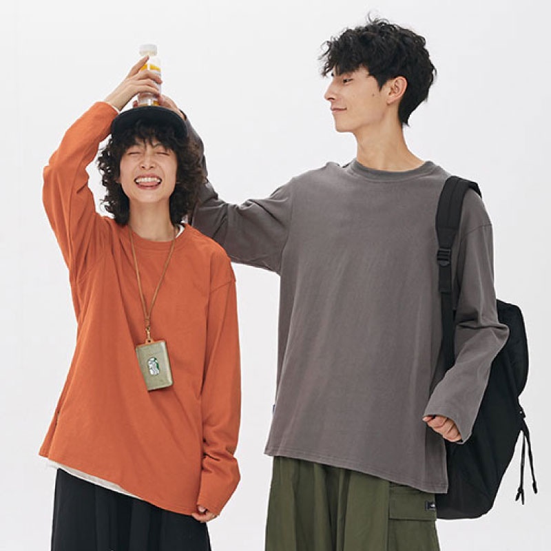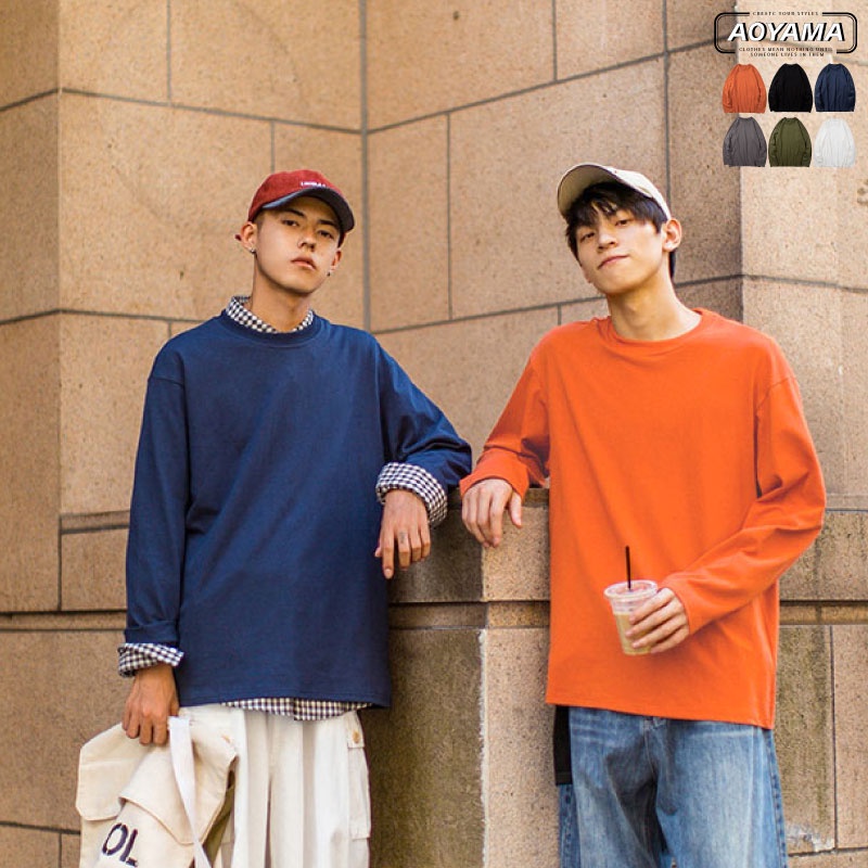 AOYAMA 日系寬純棉鬆落肩長T【A5326】長T 落肩T 工裝長T 大學T 素T 寬鬆長袖 青山