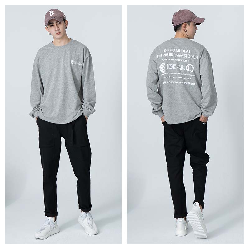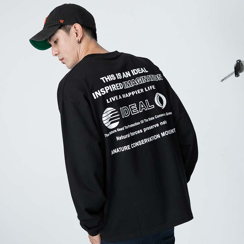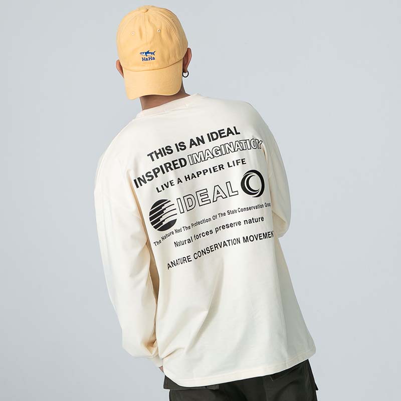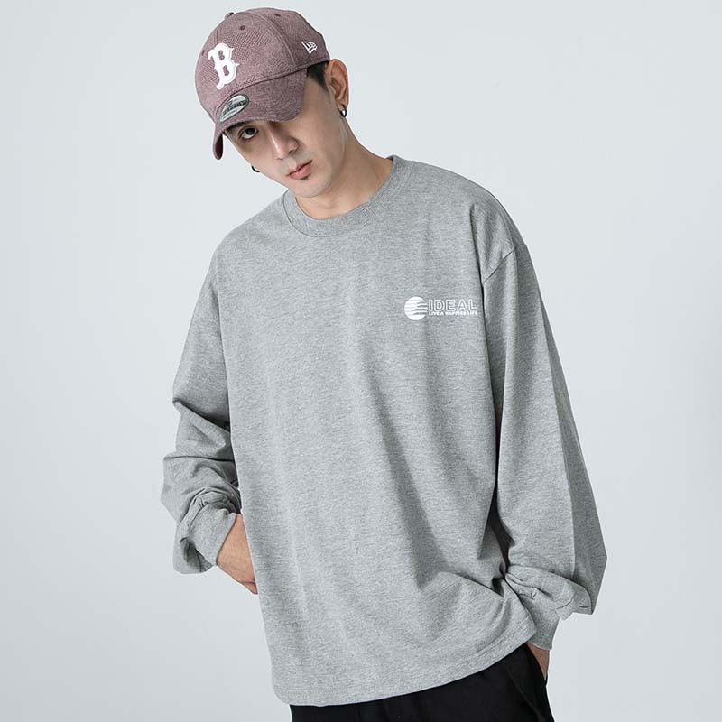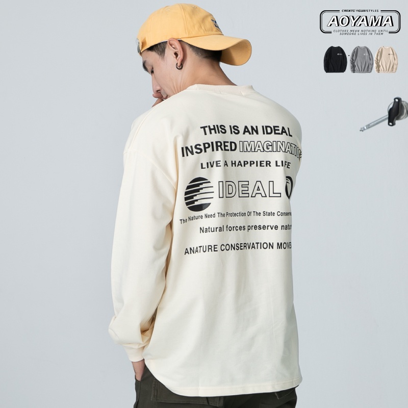 AOYAMA 韓國 IDEAL 地球圓標 落肩長T【H1107】情侶 oversize 落肩T 大學T 青山 寬鬆長袖