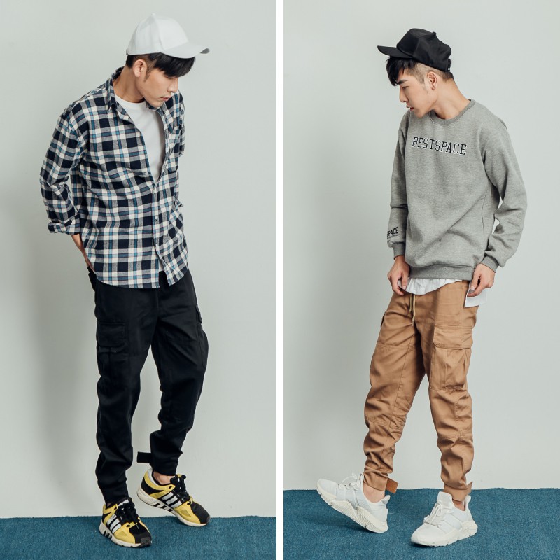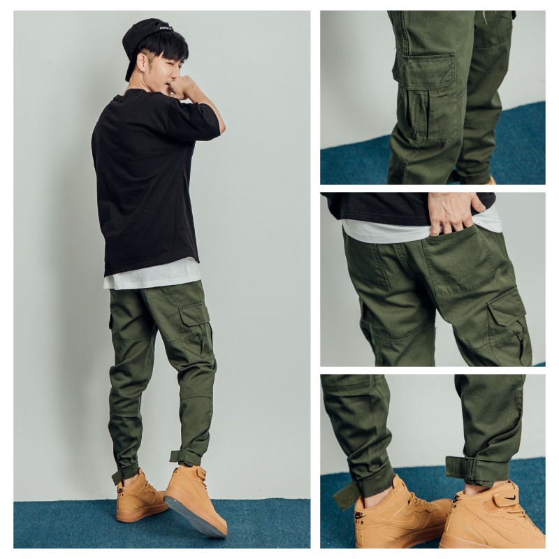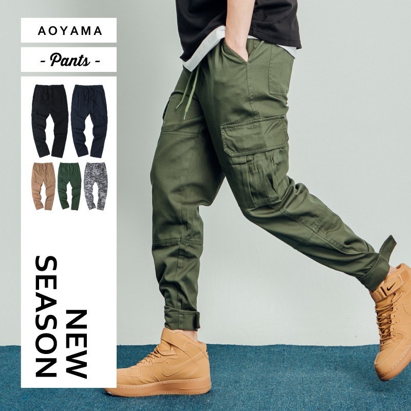 AOYAMA ins超火美式寬鬆側邊大口袋工作褲【A88920】休閒褲 慢跑褲 縮口褲 長褲 青山