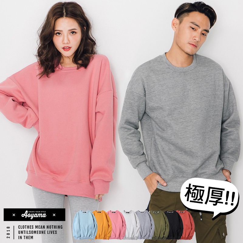 AOYAMA 獨家超級厚600磅 寬鬆落肩情侶大學T【A5815】情侶款 帽T