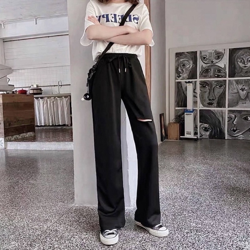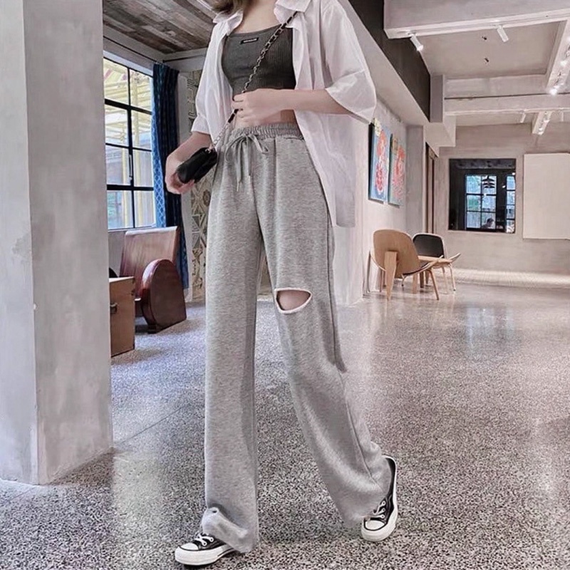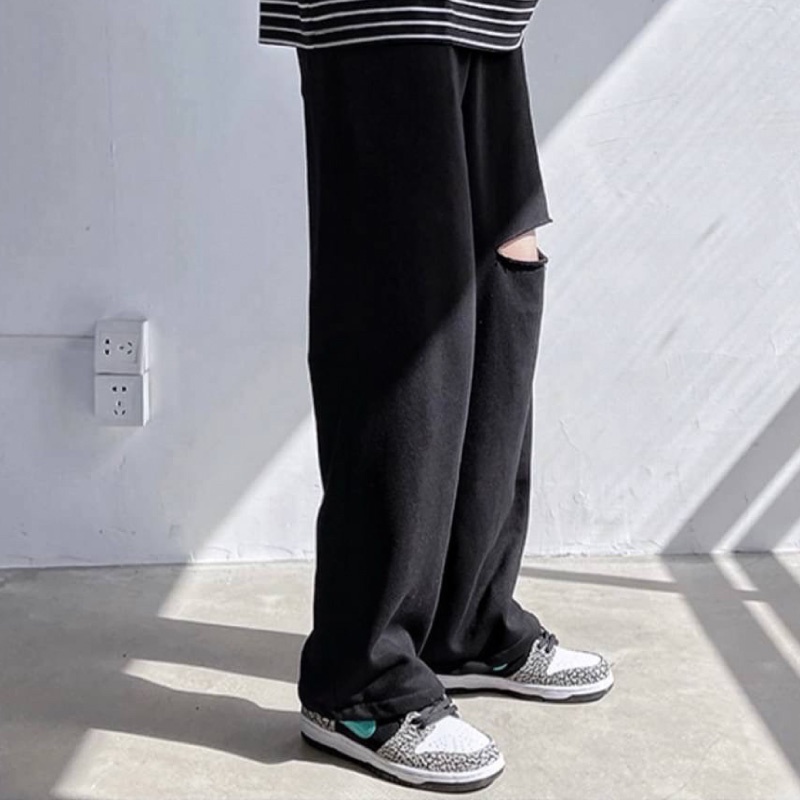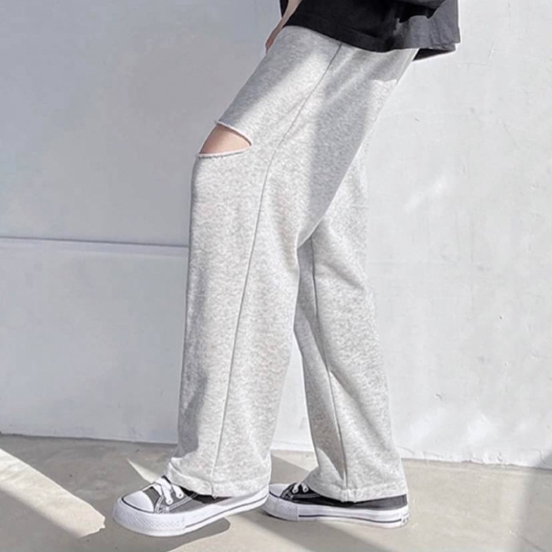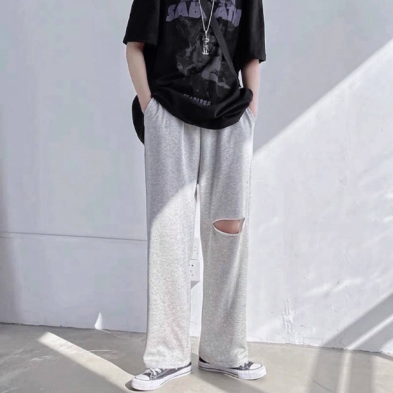 AOYAMA 街頭穿搭刀割破壞百搭棉長褲【TH56004】長褲 男女不拘 寬褲 休閒褲 搭配 韓國