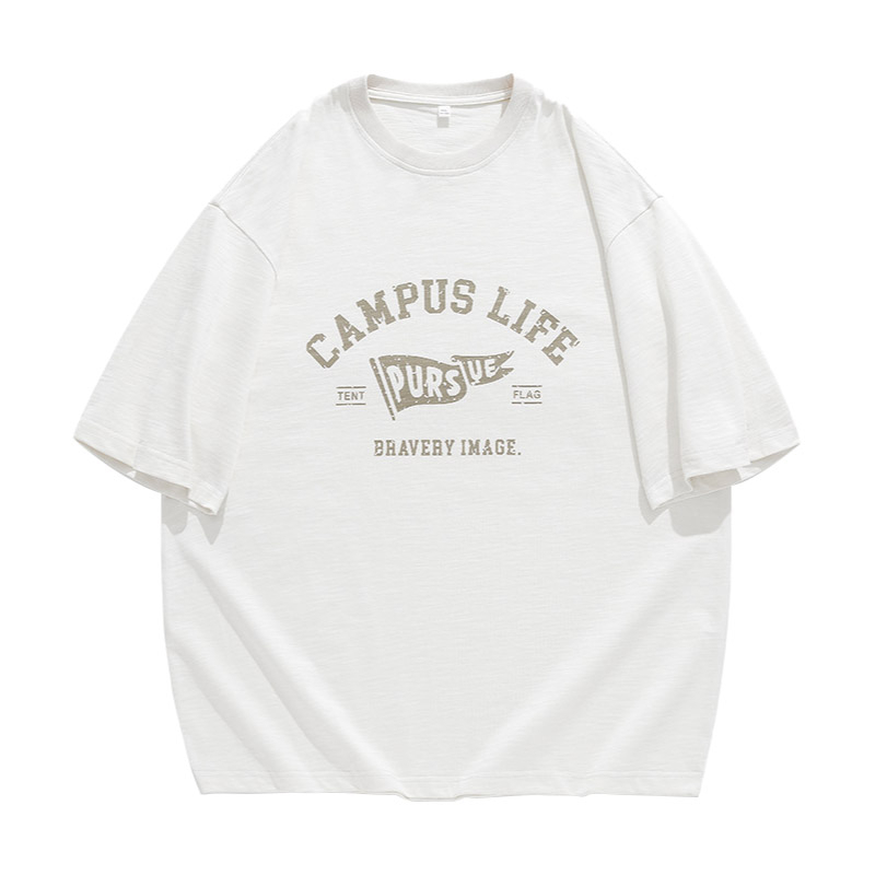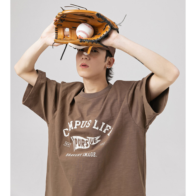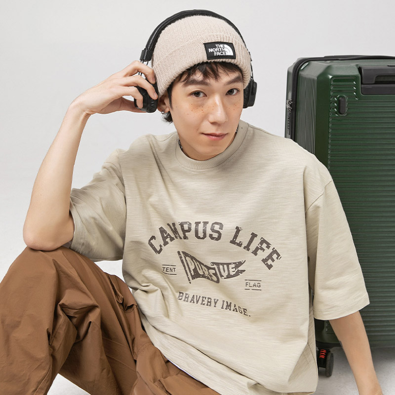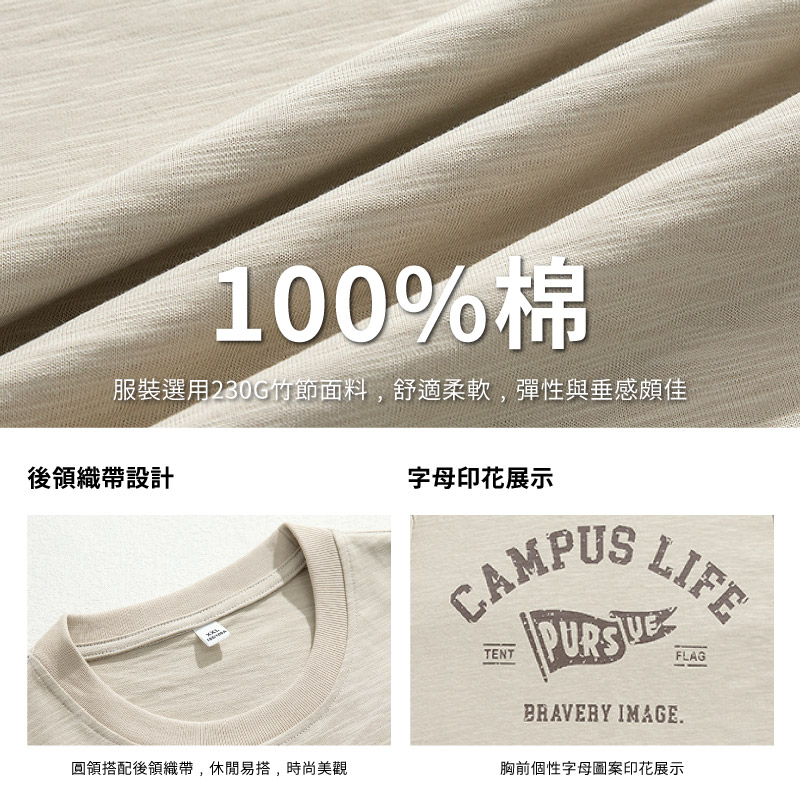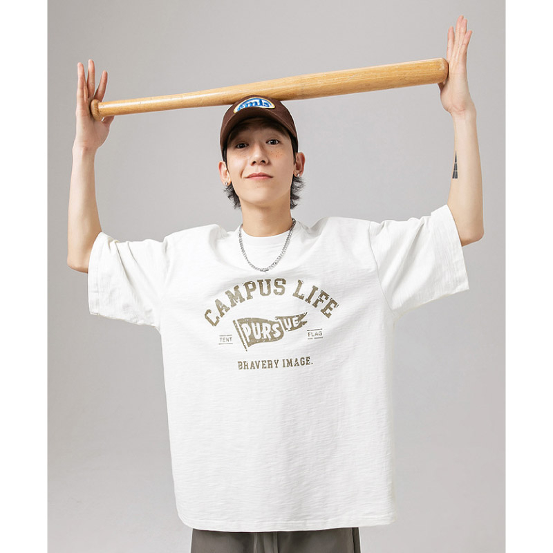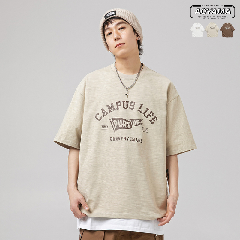 AOYAMA CAMPUS LIFE 仿舊剝落印花設計 純棉短T【AK1839】五分袖 寬鬆短袖 男女不拘 露營 青山